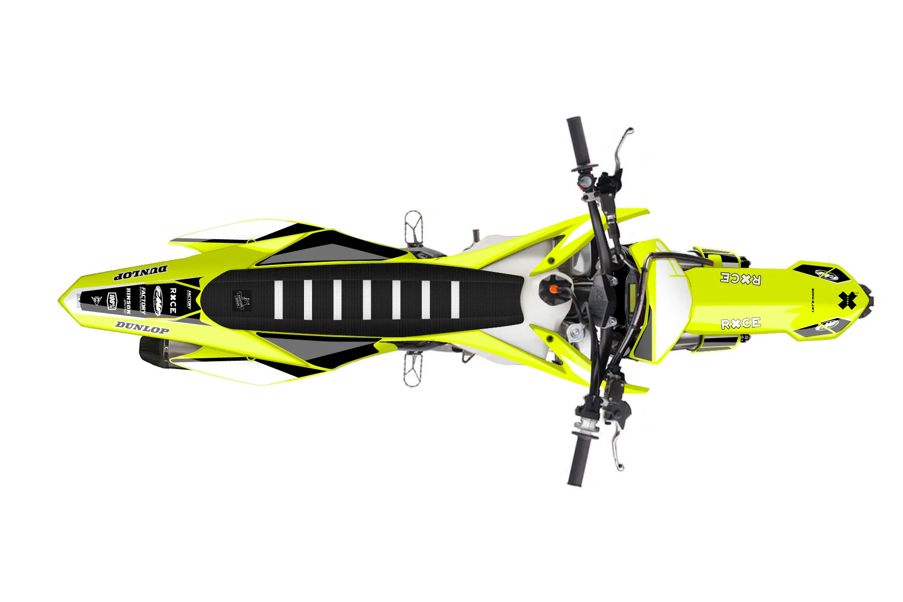 «Bright Neon» — готовый комплект графики серии Maverick для KTM MX Graphic Kit KTM SX-F 350 2013. В комплекте: графика на бак и боковые облицовки, крылья (переднее и заднее), передний щиток, номерные таблички, защита вилки. Материал: ПВХ-винил 80 мкр с холодной ламинацией 300 мкр, общая толщина 380 мкр; покрытие глянцевое или матовое на выбор. Устойчив к UV-излучению, воде, бензину и мойке высокого давления. Клей акриловый на сольвентной основе — постоянный, для гибких пластиков. На простых поверхностях монтируется без нагрева; для сложных изгибов рекомендуем фен. Этот пресет можно заказать как есть или взять за основу в конструкторе: поменять цвета, добавить стартовый номер и свой бренд. Производство — 3–5 рабочих дней, доставка по России СДЭКом или Почтой, по СНГ — курьерскими службами.