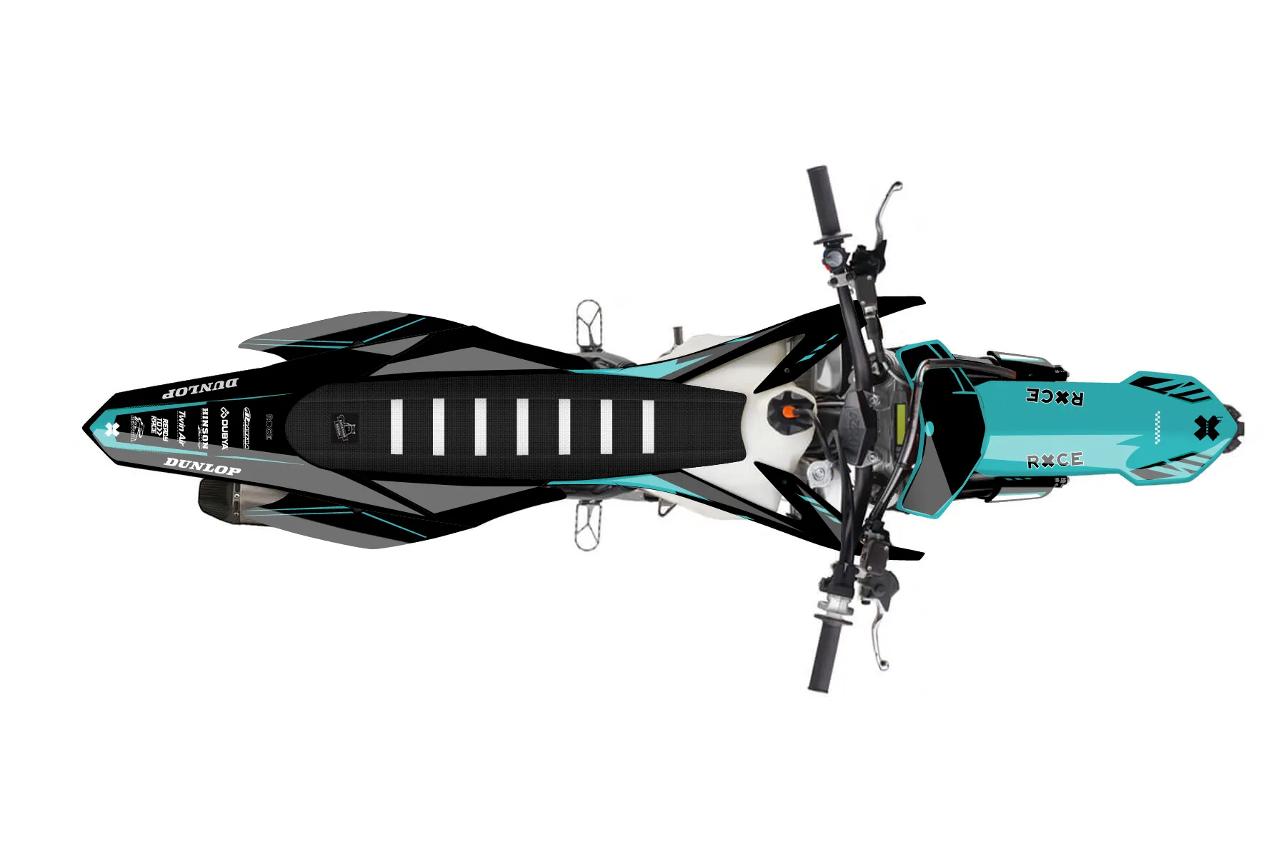 «Mitch» — готовый комплект графики серии Maverick для KTM MX Graphic Kit KTM SX-F 350 2013. В комплекте: графика на бак и боковые облицовки, крылья (переднее и заднее), передний щиток, номерные таблички, защита вилки. Материал: ПВХ-винил 80 мкр с холодной ламинацией 300 мкр, общая толщина 380 мкр; покрытие глянцевое или матовое на выбор. Устойчив к UV-излучению, воде, бензину и мойке высокого давления. Клей акриловый на сольвентной основе — постоянный, для гибких пластиков. На простых поверхностях монтируется без нагрева; для сложных изгибов рекомендуем фен. Этот пресет можно заказать как есть или взять за основу в конструкторе: поменять цвета, добавить стартовый номер и свой бренд. Производство — 3–5 рабочих дней, доставка по России СДЭКом или Почтой, по СНГ — курьерскими службами.