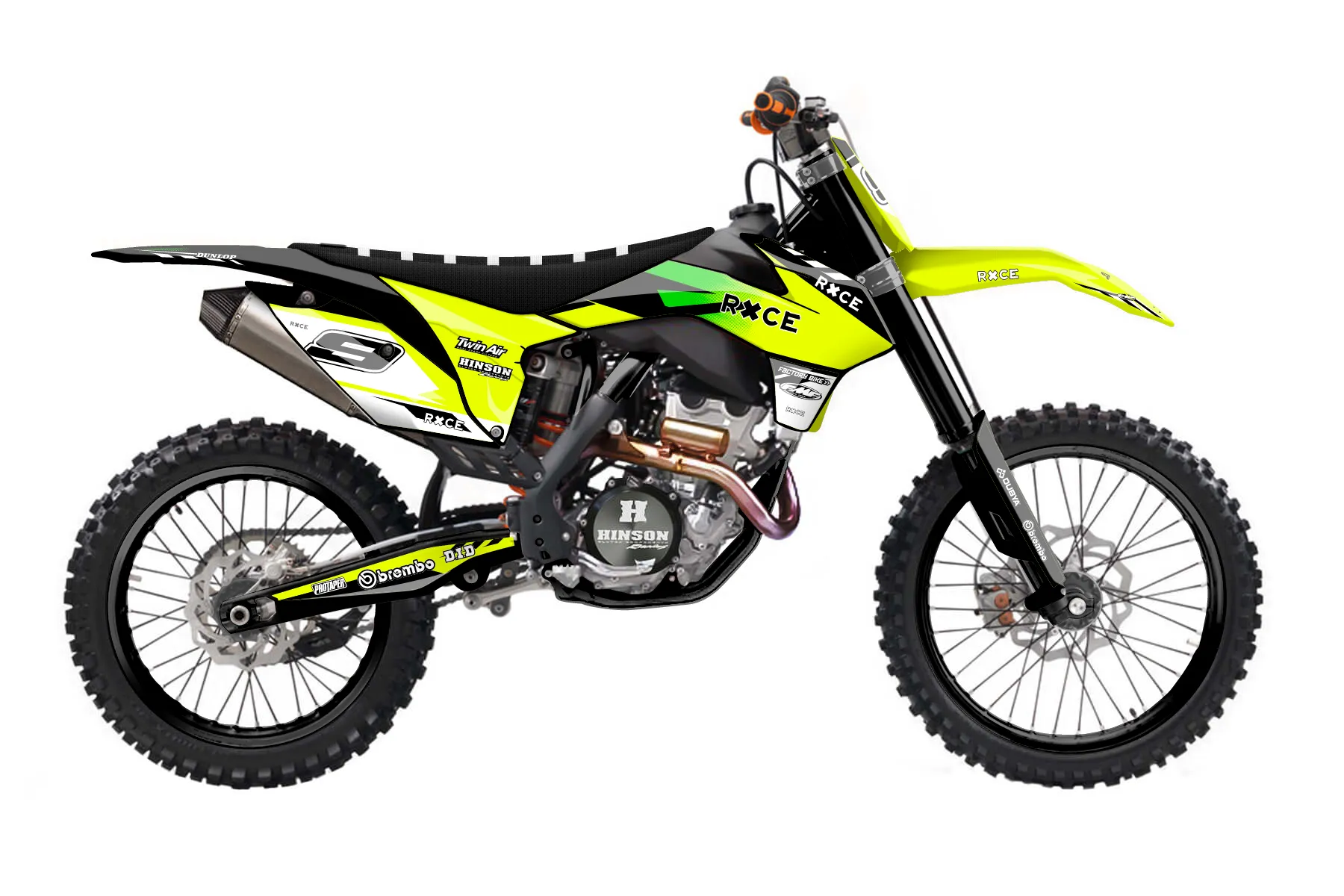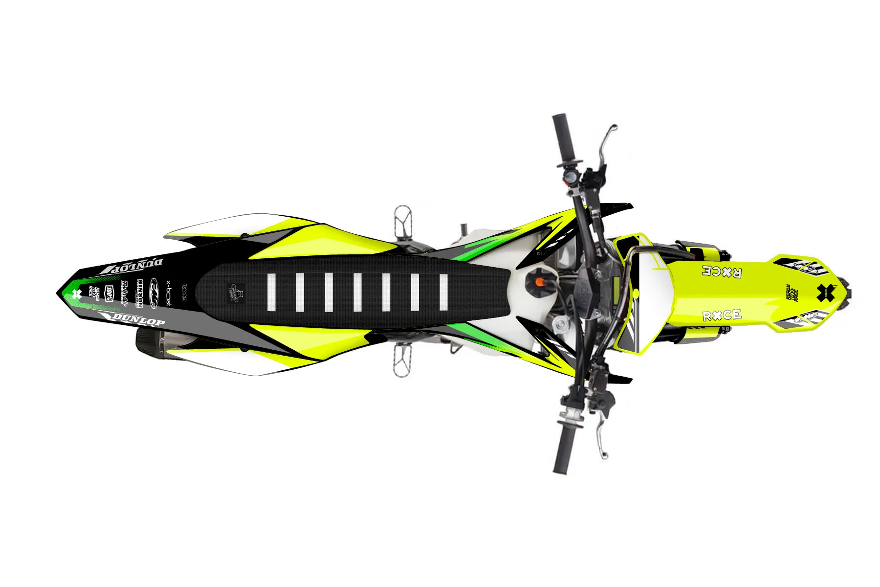«Volt Neon» — готовый комплект графики серии Maverick для KTM MX Graphic Kit KTM SX-F 350 2013. В комплекте: графика на бак и боковые облицовки, крылья (переднее и заднее), передний щиток, номерные таблички, защита вилки. Материал: ПВХ-винил 80 мкр с холодной ламинацией 300 мкр, общая толщина 380 мкр; покрытие глянцевое или матовое на выбор. Устойчив к UV-излучению, воде, бензину и мойке высокого давления. Клей акриловый на сольвентной основе — постоянный, для гибких пластиков. На простых поверхностях монтируется без нагрева; для сложных изгибов рекомендуем фен. Этот пресет можно заказать как есть или взять за основу в конструкторе: поменять цвета, добавить стартовый номер и свой бренд. Производство — 3–5 рабочих дней, доставка по России СДЭКом или Почтой, по СНГ — курьерскими службами.