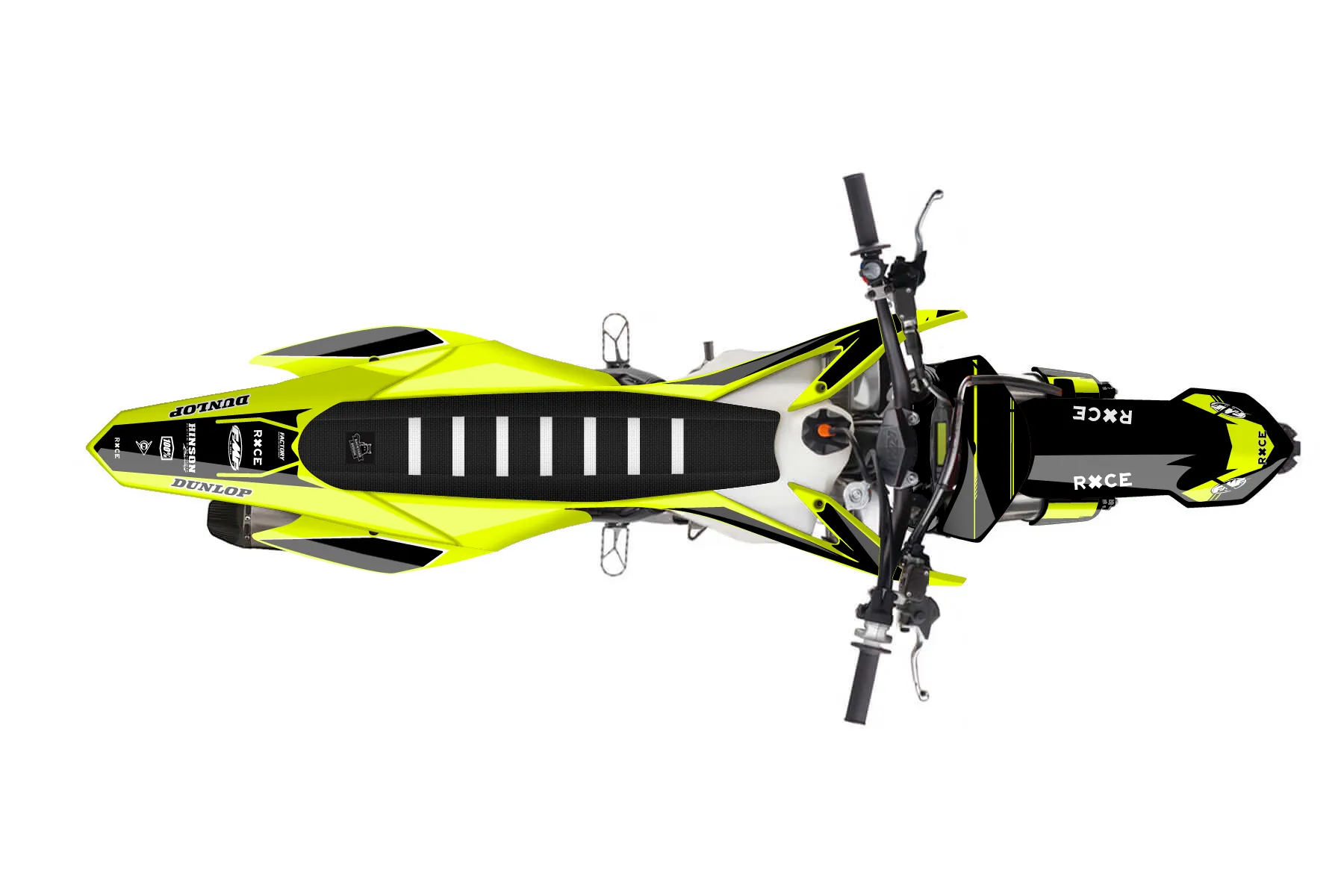 «Style Neon» — готовый комплект графики серии Untucked для KTM MX Graphic Kit KTM SX-F 350 2013. В комплекте: графика на бак и боковые облицовки, крылья (переднее и заднее), передний щиток, номерные таблички, защита вилки. Материал: ПВХ-винил 80 мкр с холодной ламинацией 300 мкр, общая толщина 380 мкр; покрытие глянцевое или матовое на выбор. Устойчив к UV-излучению, воде, бензину и мойке высокого давления. Клей акриловый на сольвентной основе — постоянный, для гибких пластиков. На простых поверхностях монтируется без нагрева; для сложных изгибов рекомендуем фен. Этот пресет можно заказать как есть или взять за основу в конструкторе: поменять цвета, добавить стартовый номер и свой бренд. Производство — 3–5 рабочих дней, доставка по России СДЭКом или Почтой, по СНГ — курьерскими службами.