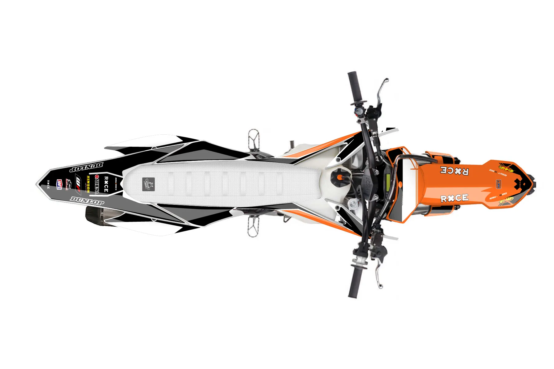 «Swell» — готовый комплект графики серии Untucked для KTM MX Graphic Kit KTM SX-F 350 2013. В комплекте: графика на бак и боковые облицовки, крылья (переднее и заднее), передний щиток, номерные таблички, защита вилки. Материал: ПВХ-винил 80 мкр с холодной ламинацией 300 мкр, общая толщина 380 мкр; покрытие глянцевое или матовое на выбор. Устойчив к UV-излучению, воде, бензину и мойке высокого давления. Клей акриловый на сольвентной основе — постоянный, для гибких пластиков. На простых поверхностях монтируется без нагрева; для сложных изгибов рекомендуем фен. Этот пресет можно заказать как есть или взять за основу в конструкторе: поменять цвета, добавить стартовый номер и свой бренд. Производство — 3–5 рабочих дней, доставка по России СДЭКом или Почтой, по СНГ — курьерскими службами.