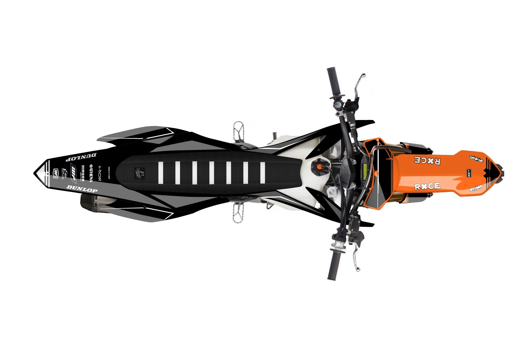 «Unmatched» — готовый комплект графики серии Untucked для KTM MX Graphic Kit KTM SX-F 350 2013. В комплекте: графика на бак и боковые облицовки, крылья (переднее и заднее), передний щиток, номерные таблички, защита вилки. Материал: ПВХ-винил 80 мкр с холодной ламинацией 300 мкр, общая толщина 380 мкр; покрытие глянцевое или матовое на выбор. Устойчив к UV-излучению, воде, бензину и мойке высокого давления. Клей акриловый на сольвентной основе — постоянный, для гибких пластиков. На простых поверхностях монтируется без нагрева; для сложных изгибов рекомендуем фен. Этот пресет можно заказать как есть или взять за основу в конструкторе: поменять цвета, добавить стартовый номер и свой бренд. Производство — 3–5 рабочих дней, доставка по России СДЭКом или Почтой, по СНГ — курьерскими службами.