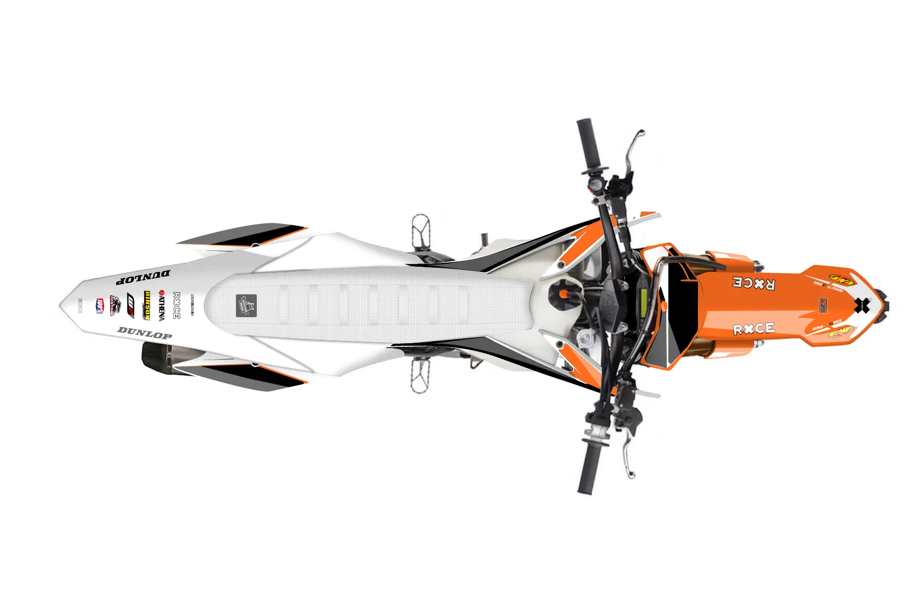 «Alpha» — готовый комплект графики серии Flow для KTM MX Graphic Kit KTM SX-F 350 2015. В комплекте: графика на бак и боковые облицовки, крылья (переднее и заднее), передний щиток, номерные таблички, защита вилки. Материал: ПВХ-винил 80 мкр с холодной ламинацией 300 мкр, общая толщина 380 мкр; покрытие глянцевое или матовое на выбор. Устойчив к UV-излучению, воде, бензину и мойке высокого давления. Клей акриловый на сольвентной основе — постоянный, для гибких пластиков. На простых поверхностях монтируется без нагрева; для сложных изгибов рекомендуем фен. Этот пресет можно заказать как есть или взять за основу в конструкторе: поменять цвета, добавить стартовый номер и свой бренд. Производство — 3–5 рабочих дней, доставка по России СДЭКом или Почтой, по СНГ — курьерскими службами.
