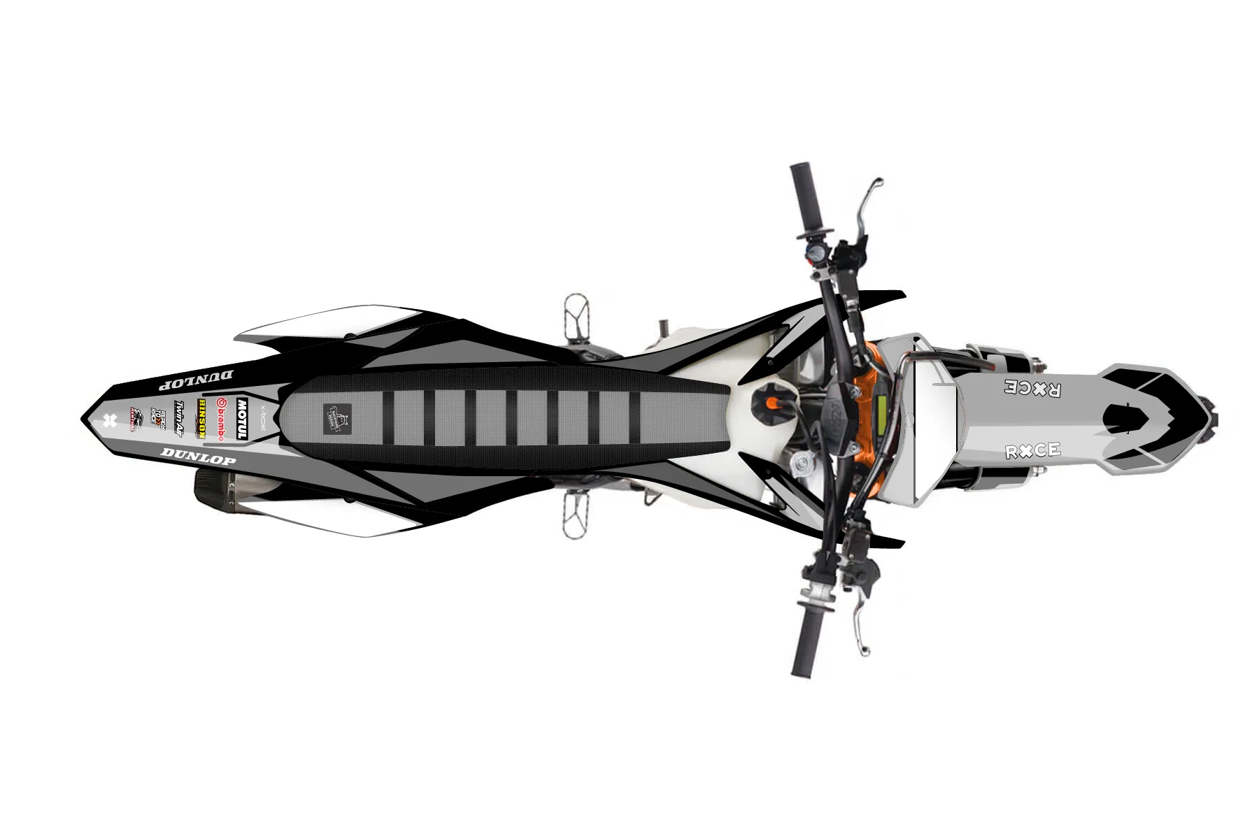 «Concepts» — готовый комплект графики серии Flow для KTM MX Graphic Kit KTM SX-F 350 2015. В комплекте: графика на бак и боковые облицовки, крылья (переднее и заднее), передний щиток, номерные таблички, защита вилки. Материал: ПВХ-винил 80 мкр с холодной ламинацией 300 мкр, общая толщина 380 мкр; покрытие глянцевое или матовое на выбор. Устойчив к UV-излучению, воде, бензину и мойке высокого давления. Клей акриловый на сольвентной основе — постоянный, для гибких пластиков. На простых поверхностях монтируется без нагрева; для сложных изгибов рекомендуем фен. Этот пресет можно заказать как есть или взять за основу в конструкторе: поменять цвета, добавить стартовый номер и свой бренд. Производство — 3–5 рабочих дней, доставка по России СДЭКом или Почтой, по СНГ — курьерскими службами.