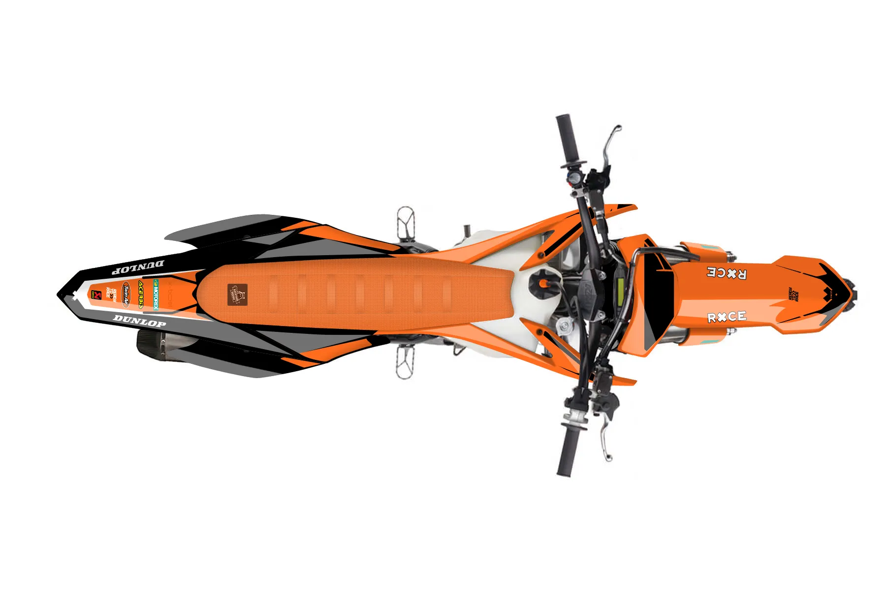 «Crystal» — готовый комплект графики серии Flow для KTM MX Graphic Kit KTM SX-F 350 2015. В комплекте: графика на бак и боковые облицовки, крылья (переднее и заднее), передний щиток, номерные таблички, защита вилки. Материал: ПВХ-винил 80 мкр с холодной ламинацией 300 мкр, общая толщина 380 мкр; покрытие глянцевое или матовое на выбор. Устойчив к UV-излучению, воде, бензину и мойке высокого давления. Клей акриловый на сольвентной основе — постоянный, для гибких пластиков. На простых поверхностях монтируется без нагрева; для сложных изгибов рекомендуем фен. Этот пресет можно заказать как есть или взять за основу в конструкторе: поменять цвета, добавить стартовый номер и свой бренд. Производство — 3–5 рабочих дней, доставка по России СДЭКом или Почтой, по СНГ — курьерскими службами.