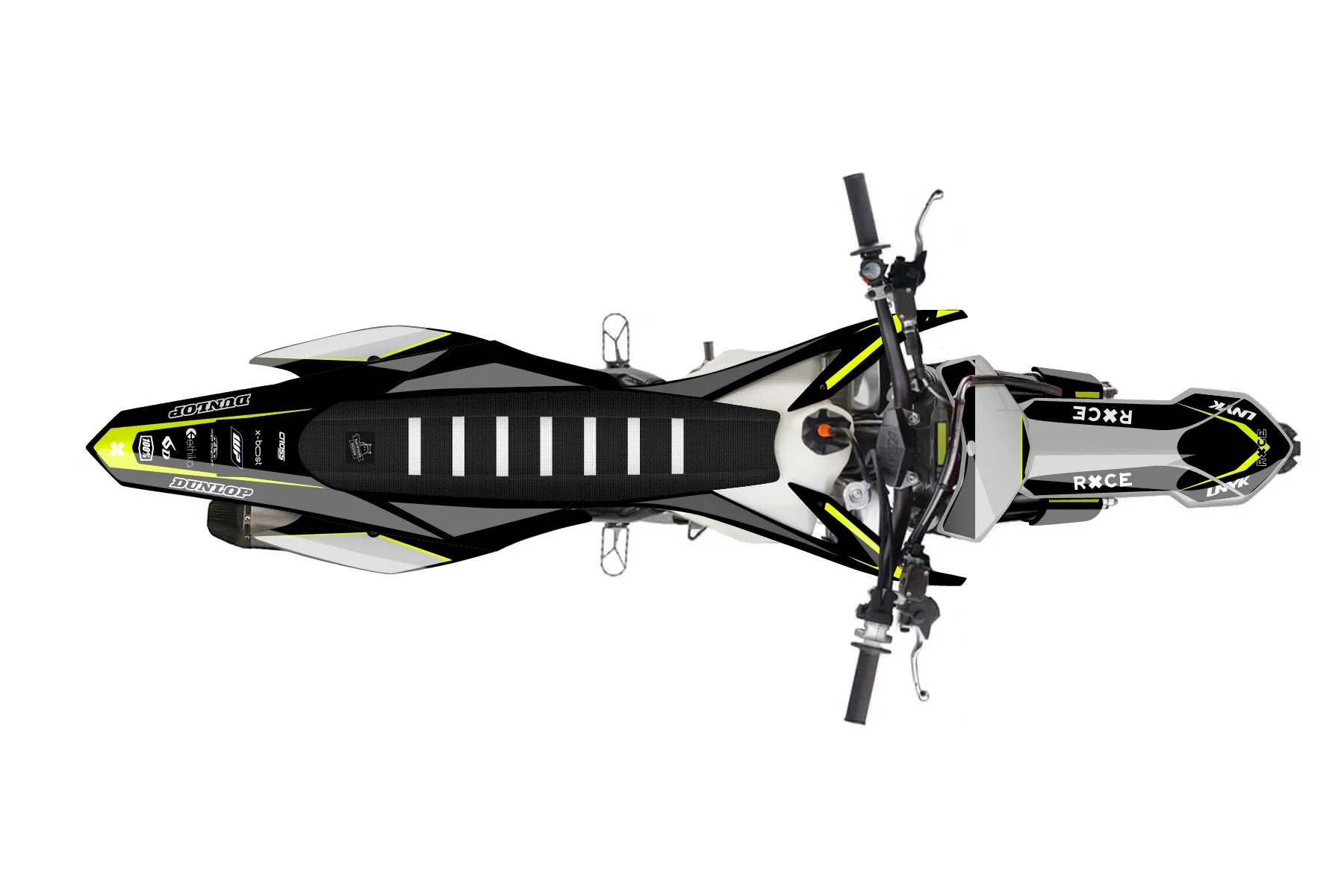 «Fluo» — готовый комплект графики серии Flow для KTM MX Graphic Kit KTM SX-F 350 2015. В комплекте: графика на бак и боковые облицовки, крылья (переднее и заднее), передний щиток, номерные таблички, защита вилки. Материал: ПВХ-винил 80 мкр с холодной ламинацией 300 мкр, общая толщина 380 мкр; покрытие глянцевое или матовое на выбор. Устойчив к UV-излучению, воде, бензину и мойке высокого давления. Клей акриловый на сольвентной основе — постоянный, для гибких пластиков. На простых поверхностях монтируется без нагрева; для сложных изгибов рекомендуем фен. Этот пресет можно заказать как есть или взять за основу в конструкторе: поменять цвета, добавить стартовый номер и свой бренд. Производство — 3–5 рабочих дней, доставка по России СДЭКом или Почтой, по СНГ — курьерскими службами.