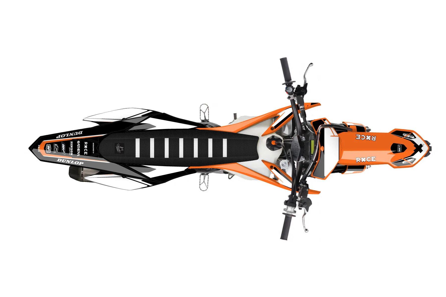 «Spotlight» — готовый комплект графики серии Flow для KTM MX Graphic Kit KTM SX-F 350 2015. В комплекте: графика на бак и боковые облицовки, крылья (переднее и заднее), передний щиток, номерные таблички, защита вилки. Материал: ПВХ-винил 80 мкр с холодной ламинацией 300 мкр, общая толщина 380 мкр; покрытие глянцевое или матовое на выбор. Устойчив к UV-излучению, воде, бензину и мойке высокого давления. Клей акриловый на сольвентной основе — постоянный, для гибких пластиков. На простых поверхностях монтируется без нагрева; для сложных изгибов рекомендуем фен. Этот пресет можно заказать как есть или взять за основу в конструкторе: поменять цвета, добавить стартовый номер и свой бренд. Производство — 3–5 рабочих дней, доставка по России СДЭКом или Почтой, по СНГ — курьерскими службами.