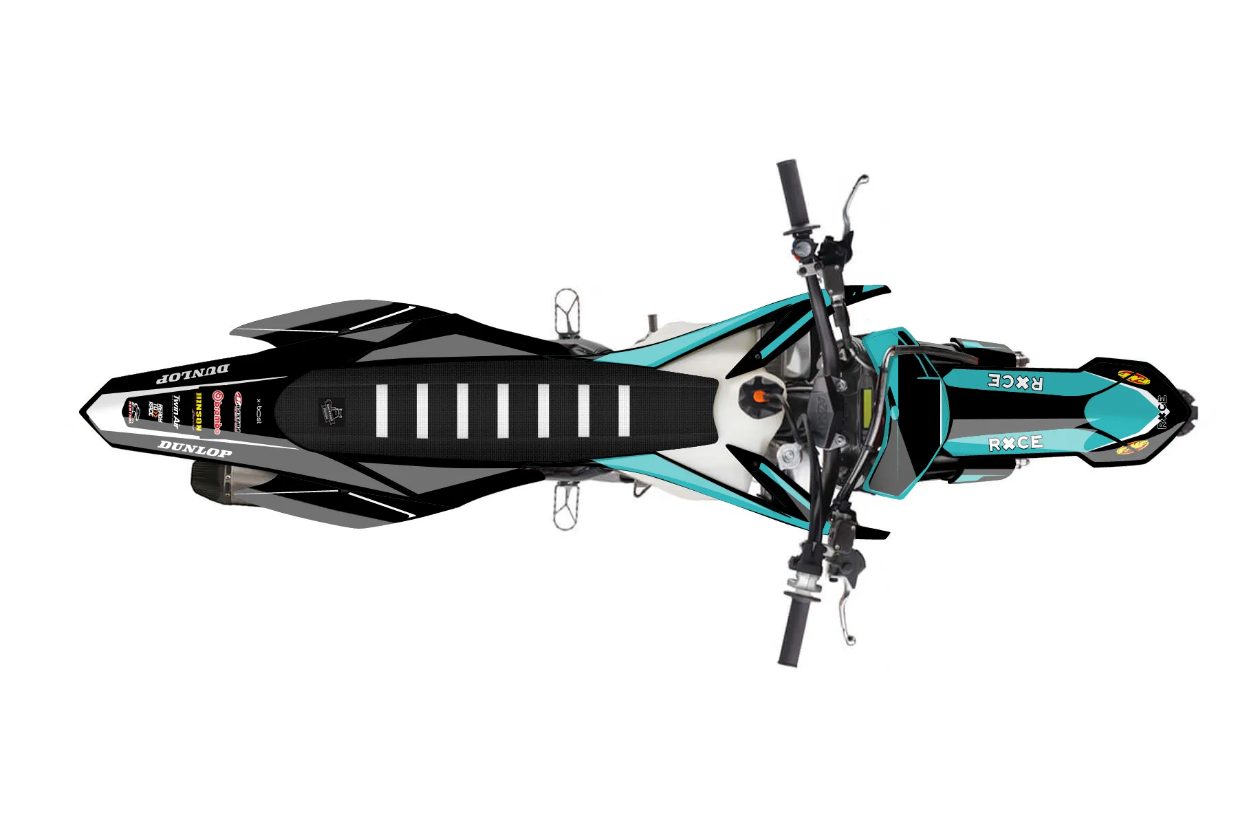 «Trademark» — готовый комплект графики серии Flow для KTM MX Graphic Kit KTM SX-F 350 2015. В комплекте: графика на бак и боковые облицовки, крылья (переднее и заднее), передний щиток, номерные таблички, защита вилки. Материал: ПВХ-винил 80 мкр с холодной ламинацией 300 мкр, общая толщина 380 мкр; покрытие глянцевое или матовое на выбор. Устойчив к UV-излучению, воде, бензину и мойке высокого давления. Клей акриловый на сольвентной основе — постоянный, для гибких пластиков. На простых поверхностях монтируется без нагрева; для сложных изгибов рекомендуем фен. Этот пресет можно заказать как есть или взять за основу в конструкторе: поменять цвета, добавить стартовый номер и свой бренд. Производство — 3–5 рабочих дней, доставка по России СДЭКом или Почтой, по СНГ — курьерскими службами.