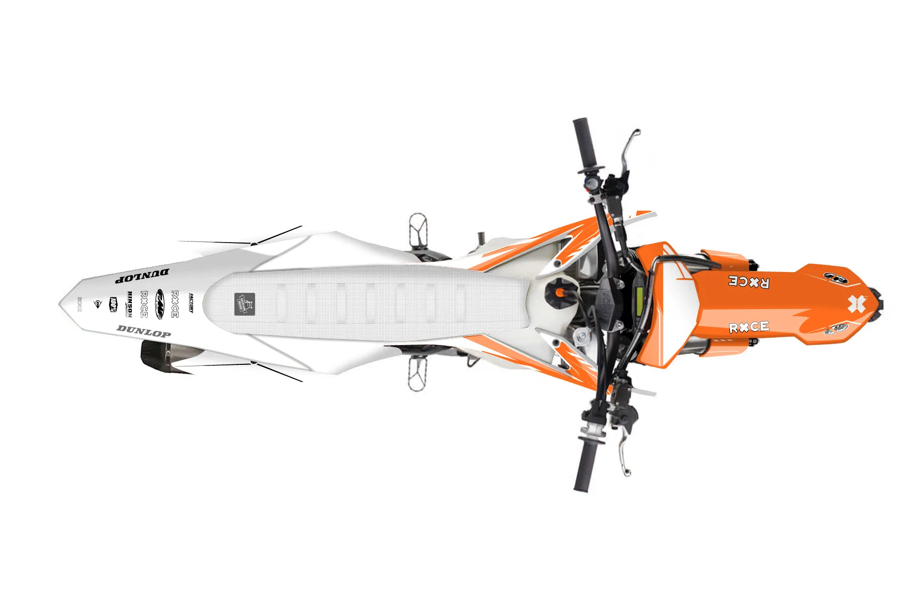 «Bones» — готовый комплект графики серии Maverick для KTM MX Graphic Kit KTM SX-F 350 2015. В комплекте: графика на бак и боковые облицовки, крылья (переднее и заднее), передний щиток, номерные таблички, защита вилки. Материал: ПВХ-винил 80 мкр с холодной ламинацией 300 мкр, общая толщина 380 мкр; покрытие глянцевое или матовое на выбор. Устойчив к UV-излучению, воде, бензину и мойке высокого давления. Клей акриловый на сольвентной основе — постоянный, для гибких пластиков. На простых поверхностях монтируется без нагрева; для сложных изгибов рекомендуем фен. Этот пресет можно заказать как есть или взять за основу в конструкторе: поменять цвета, добавить стартовый номер и свой бренд. Производство — 3–5 рабочих дней, доставка по России СДЭКом или Почтой, по СНГ — курьерскими службами.