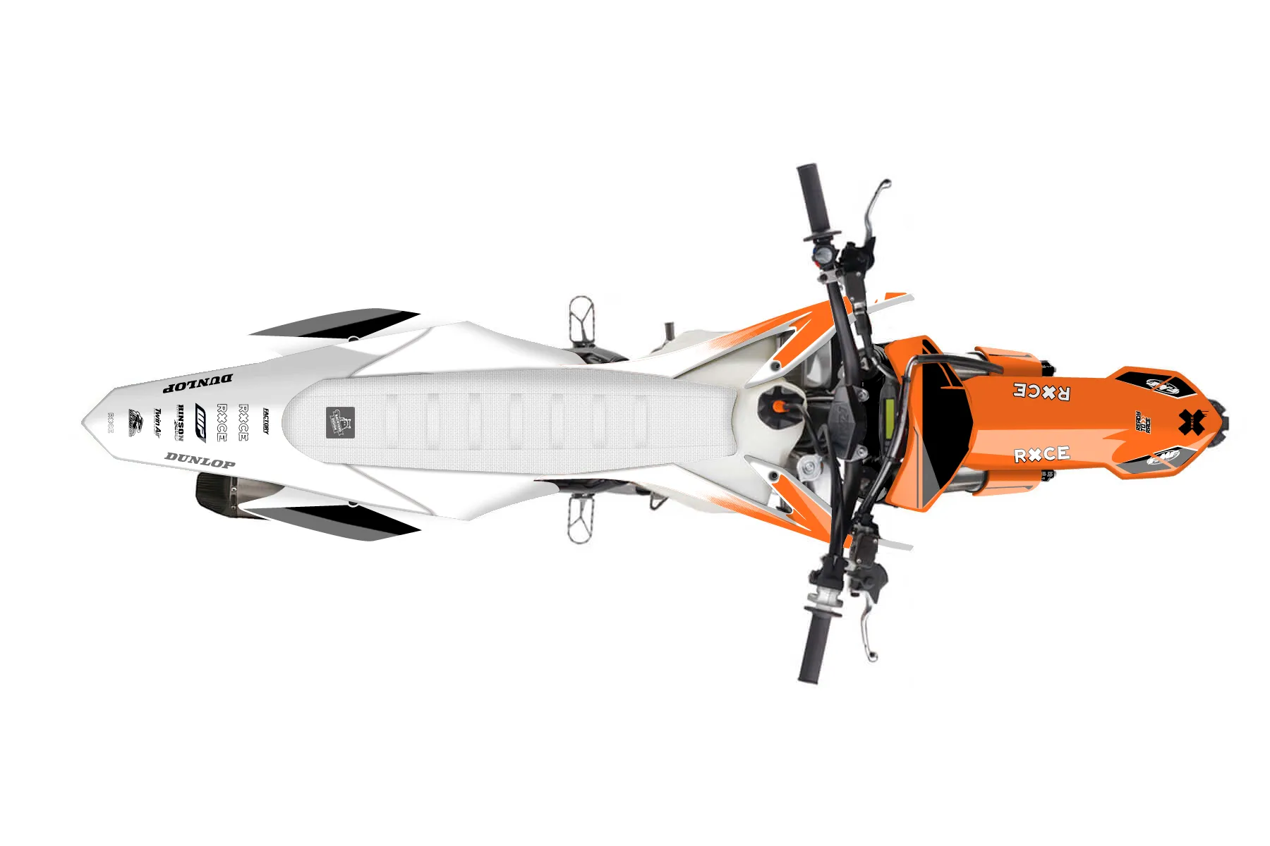 «Chase» — готовый комплект графики серии Maverick для KTM MX Graphic Kit KTM SX-F 350 2015. В комплекте: графика на бак и боковые облицовки, крылья (переднее и заднее), передний щиток, номерные таблички, защита вилки. Материал: ПВХ-винил 80 мкр с холодной ламинацией 300 мкр, общая толщина 380 мкр; покрытие глянцевое или матовое на выбор. Устойчив к UV-излучению, воде, бензину и мойке высокого давления. Клей акриловый на сольвентной основе — постоянный, для гибких пластиков. На простых поверхностях монтируется без нагрева; для сложных изгибов рекомендуем фен. Этот пресет можно заказать как есть или взять за основу в конструкторе: поменять цвета, добавить стартовый номер и свой бренд. Производство — 3–5 рабочих дней, доставка по России СДЭКом или Почтой, по СНГ — курьерскими службами.