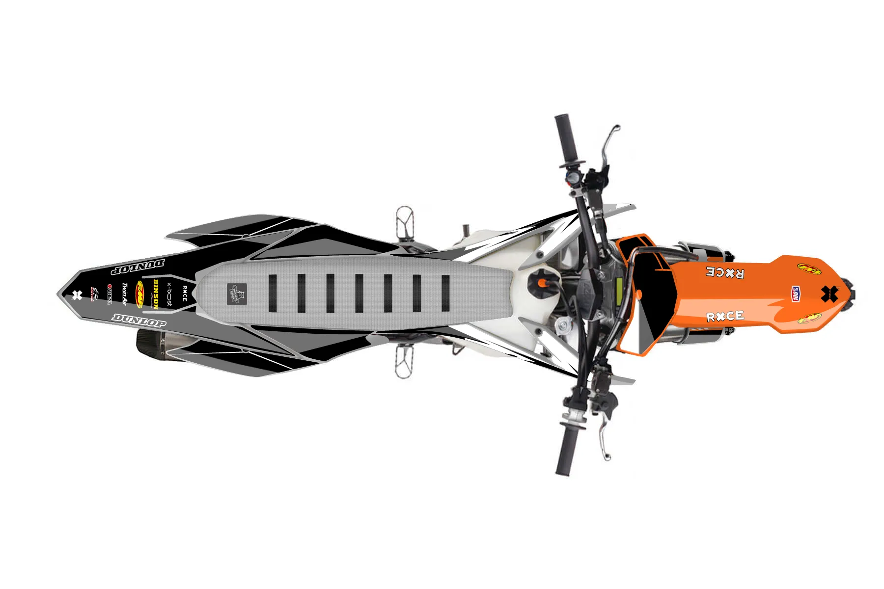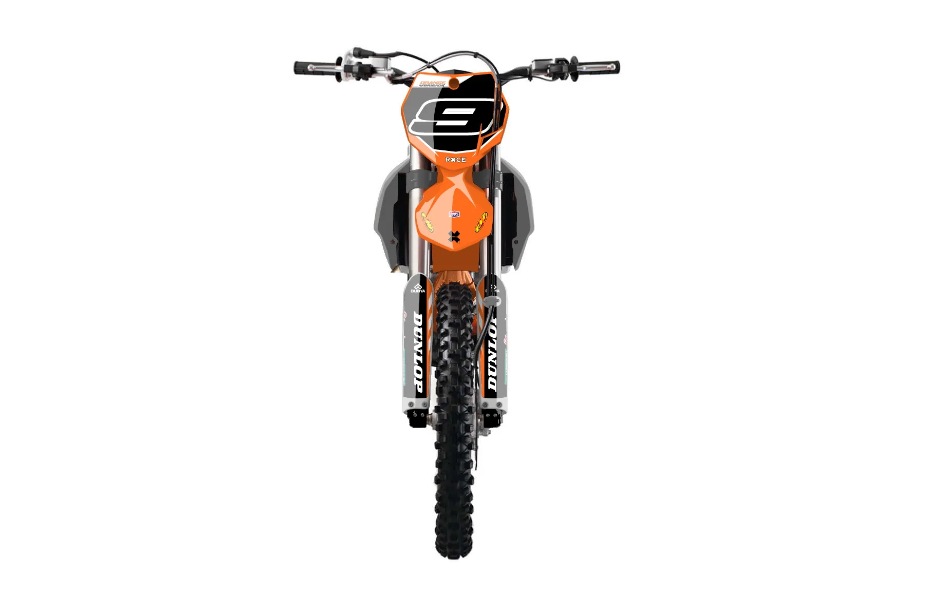 «Eleven» — готовый комплект графики серии Maverick для KTM MX Graphic Kit KTM SX-F 350 2015. В комплекте: графика на бак и боковые облицовки, крылья (переднее и заднее), передний щиток, номерные таблички, защита вилки. Материал: ПВХ-винил 80 мкр с холодной ламинацией 300 мкр, общая толщина 380 мкр; покрытие глянцевое или матовое на выбор. Устойчив к UV-излучению, воде, бензину и мойке высокого давления. Клей акриловый на сольвентной основе — постоянный, для гибких пластиков. На простых поверхностях монтируется без нагрева; для сложных изгибов рекомендуем фен. Этот пресет можно заказать как есть или взять за основу в конструкторе: поменять цвета, добавить стартовый номер и свой бренд. Производство — 3–5 рабочих дней, доставка по России СДЭКом или Почтой, по СНГ — курьерскими службами.
