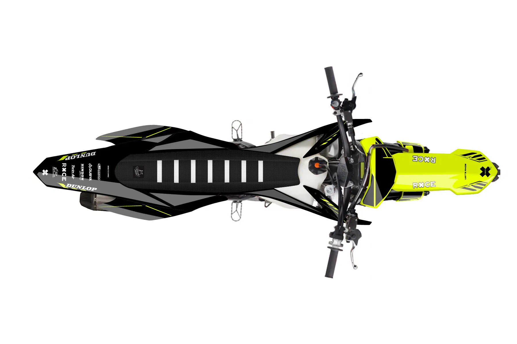 «Kitted Neon» — готовый комплект графики серии Maverick для KTM MX Graphic Kit KTM SX-F 350 2015. В комплекте: графика на бак и боковые облицовки, крылья (переднее и заднее), передний щиток, номерные таблички, защита вилки. Материал: ПВХ-винил 80 мкр с холодной ламинацией 300 мкр, общая толщина 380 мкр; покрытие глянцевое или матовое на выбор. Устойчив к UV-излучению, воде, бензину и мойке высокого давления. Клей акриловый на сольвентной основе — постоянный, для гибких пластиков. На простых поверхностях монтируется без нагрева; для сложных изгибов рекомендуем фен. Этот пресет можно заказать как есть или взять за основу в конструкторе: поменять цвета, добавить стартовый номер и свой бренд. Производство — 3–5 рабочих дней, доставка по России СДЭКом или Почтой, по СНГ — курьерскими службами.
