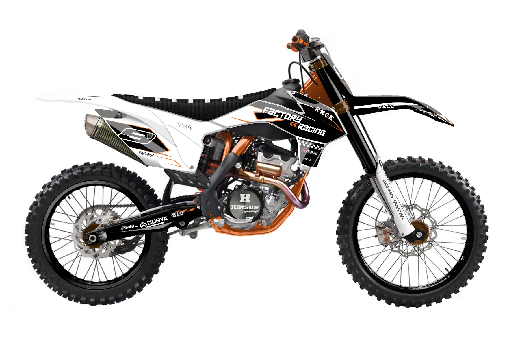 «Sick» — готовый комплект графики серии Maverick для KTM MX Graphic Kit KTM SX-F 350 2015. В комплекте: графика на бак и боковые облицовки, крылья (переднее и заднее), передний щиток, номерные таблички, защита вилки. Материал: ПВХ-винил 80 мкр с холодной ламинацией 300 мкр, общая толщина 380 мкр; покрытие глянцевое или матовое на выбор. Устойчив к UV-излучению, воде, бензину и мойке высокого давления. Клей акриловый на сольвентной основе — постоянный, для гибких пластиков. На простых поверхностях монтируется без нагрева; для сложных изгибов рекомендуем фен. Этот пресет можно заказать как есть или взять за основу в конструкторе: поменять цвета, добавить стартовый номер и свой бренд. Производство — 3–5 рабочих дней, доставка по России СДЭКом или Почтой, по СНГ — курьерскими службами.