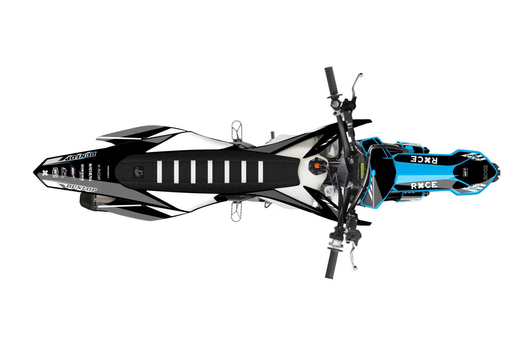 «Swirl» — готовый комплект графики серии Maverick для KTM MX Graphic Kit KTM SX-F 350 2015. В комплекте: графика на бак и боковые облицовки, крылья (переднее и заднее), передний щиток, номерные таблички, защита вилки. Материал: ПВХ-винил 80 мкр с холодной ламинацией 300 мкр, общая толщина 380 мкр; покрытие глянцевое или матовое на выбор. Устойчив к UV-излучению, воде, бензину и мойке высокого давления. Клей акриловый на сольвентной основе — постоянный, для гибких пластиков. На простых поверхностях монтируется без нагрева; для сложных изгибов рекомендуем фен. Этот пресет можно заказать как есть или взять за основу в конструкторе: поменять цвета, добавить стартовый номер и свой бренд. Производство — 3–5 рабочих дней, доставка по России СДЭКом или Почтой, по СНГ — курьерскими службами.