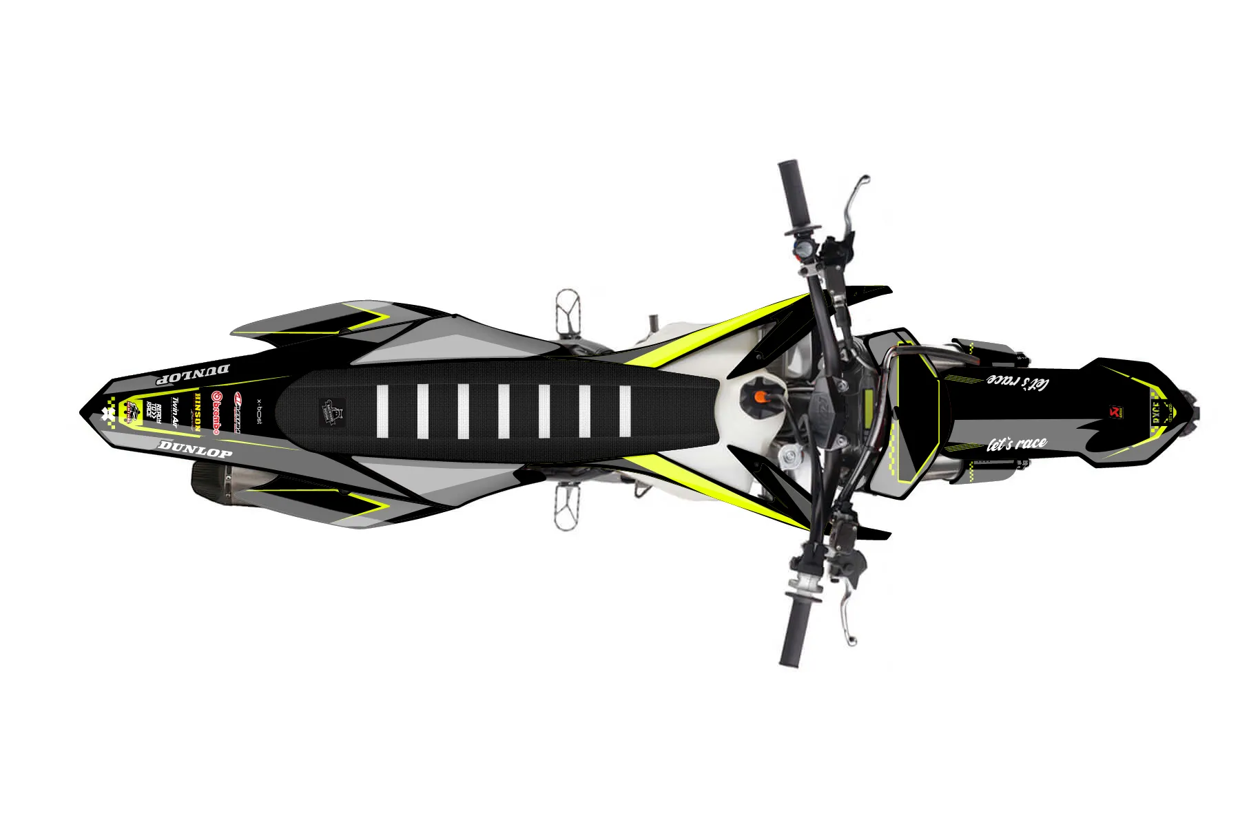 «Refuse Neon» — готовый комплект графики серии Staple для KTM MX Graphic Kit KTM SX-F 350 2015. В комплекте: графика на бак и боковые облицовки, крылья (переднее и заднее), передний щиток, номерные таблички, защита вилки. Материал: ПВХ-винил 80 мкр с холодной ламинацией 300 мкр, общая толщина 380 мкр; покрытие глянцевое или матовое на выбор. Устойчив к UV-излучению, воде, бензину и мойке высокого давления. Клей акриловый на сольвентной основе — постоянный, для гибких пластиков. На простых поверхностях монтируется без нагрева; для сложных изгибов рекомендуем фен. Этот пресет можно заказать как есть или взять за основу в конструкторе: поменять цвета, добавить стартовый номер и свой бренд. Производство — 3–5 рабочих дней, доставка по России СДЭКом или Почтой, по СНГ — курьерскими службами.