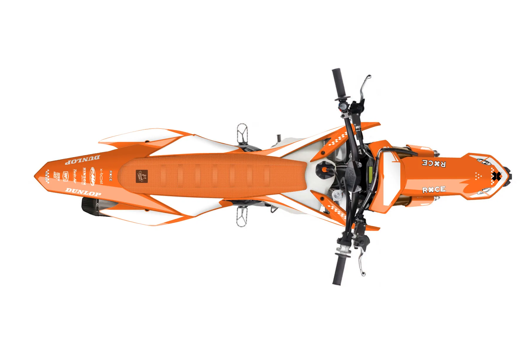 «Type» — готовый комплект графики серии Staple для KTM MX Graphic Kit KTM SX-F 350 2015. В комплекте: графика на бак и боковые облицовки, крылья (переднее и заднее), передний щиток, номерные таблички, защита вилки. Материал: ПВХ-винил 80 мкр с холодной ламинацией 300 мкр, общая толщина 380 мкр; покрытие глянцевое или матовое на выбор. Устойчив к UV-излучению, воде, бензину и мойке высокого давления. Клей акриловый на сольвентной основе — постоянный, для гибких пластиков. На простых поверхностях монтируется без нагрева; для сложных изгибов рекомендуем фен. Этот пресет можно заказать как есть или взять за основу в конструкторе: поменять цвета, добавить стартовый номер и свой бренд. Производство — 3–5 рабочих дней, доставка по России СДЭКом или Почтой, по СНГ — курьерскими службами.