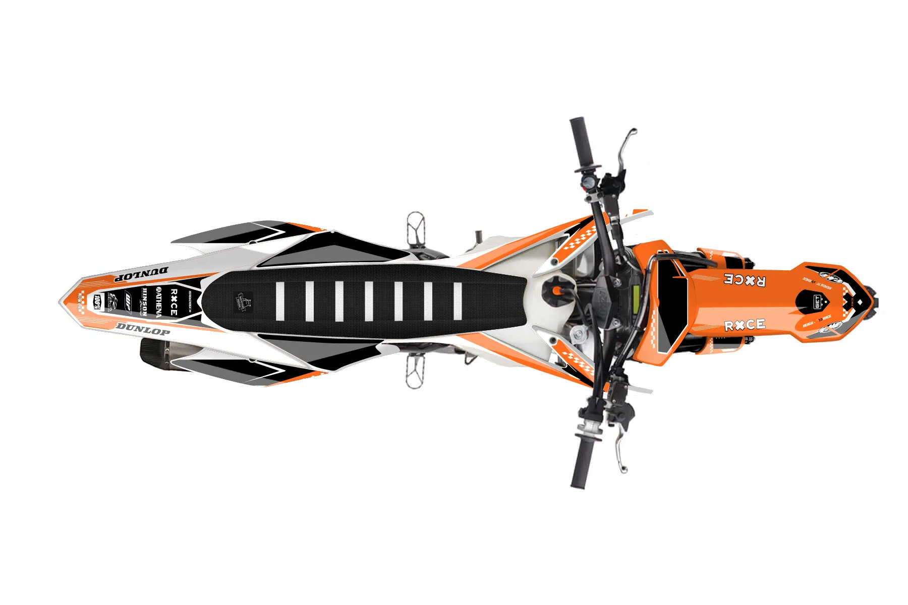 «Warp» — готовый комплект графики серии Staple для KTM MX Graphic Kit KTM SX-F 350 2015. В комплекте: графика на бак и боковые облицовки, крылья (переднее и заднее), передний щиток, номерные таблички, защита вилки. Материал: ПВХ-винил 80 мкр с холодной ламинацией 300 мкр, общая толщина 380 мкр; покрытие глянцевое или матовое на выбор. Устойчив к UV-излучению, воде, бензину и мойке высокого давления. Клей акриловый на сольвентной основе — постоянный, для гибких пластиков. На простых поверхностях монтируется без нагрева; для сложных изгибов рекомендуем фен. Этот пресет можно заказать как есть или взять за основу в конструкторе: поменять цвета, добавить стартовый номер и свой бренд. Производство — 3–5 рабочих дней, доставка по России СДЭКом или Почтой, по СНГ — курьерскими службами.