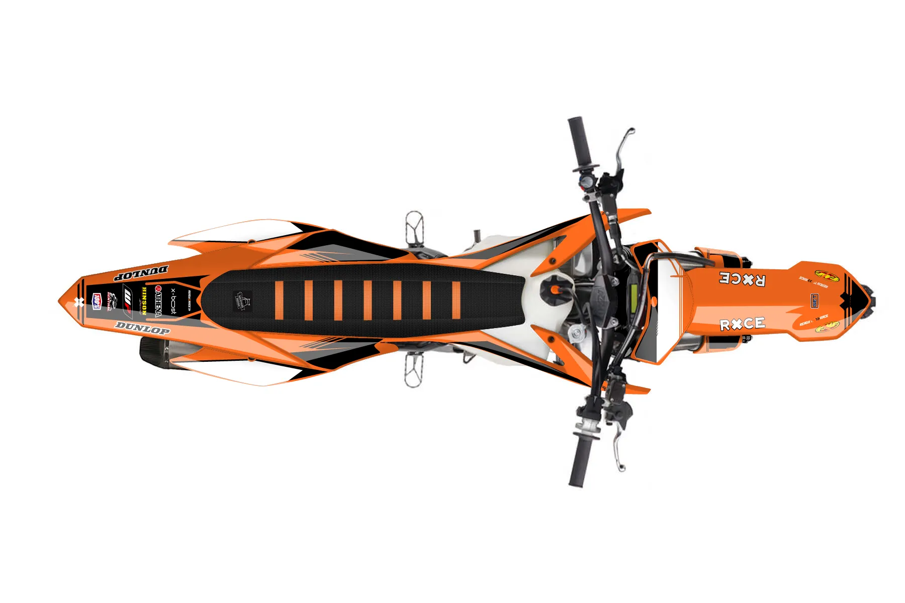«Intact» — готовый комплект графики серии Untucked для KTM MX Graphic Kit KTM SX-F 350 2015. В комплекте: графика на бак и боковые облицовки, крылья (переднее и заднее), передний щиток, номерные таблички, защита вилки. Материал: ПВХ-винил 80 мкр с холодной ламинацией 300 мкр, общая толщина 380 мкр; покрытие глянцевое или матовое на выбор. Устойчив к UV-излучению, воде, бензину и мойке высокого давления. Клей акриловый на сольвентной основе — постоянный, для гибких пластиков. На простых поверхностях монтируется без нагрева; для сложных изгибов рекомендуем фен. Этот пресет можно заказать как есть или взять за основу в конструкторе: поменять цвета, добавить стартовый номер и свой бренд. Производство — 3–5 рабочих дней, доставка по России СДЭКом или Почтой, по СНГ — курьерскими службами.