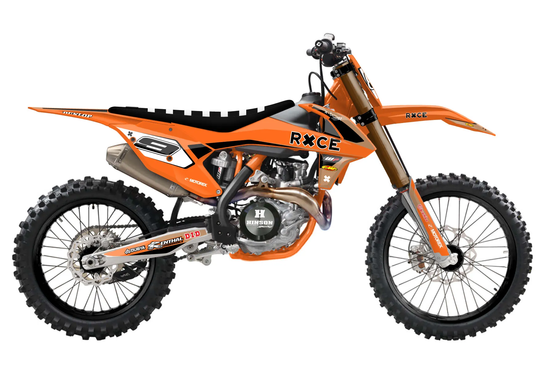 «Bang» — готовый комплект графики серии Flow для KTM MX Graphic Kit KTM SX-F 350 2016. В комплекте: графика на бак и боковые облицовки, крылья (переднее и заднее), передний щиток, номерные таблички, защита вилки. Материал: ПВХ-винил 80 мкр с холодной ламинацией 300 мкр, общая толщина 380 мкр; покрытие глянцевое или матовое на выбор. Устойчив к UV-излучению, воде, бензину и мойке высокого давления. Клей акриловый на сольвентной основе — постоянный, для гибких пластиков. На простых поверхностях монтируется без нагрева; для сложных изгибов рекомендуем фен. Этот пресет можно заказать как есть или взять за основу в конструкторе: поменять цвета, добавить стартовый номер и свой бренд. Производство — 3–5 рабочих дней, доставка по России СДЭКом или Почтой, по СНГ — курьерскими службами.