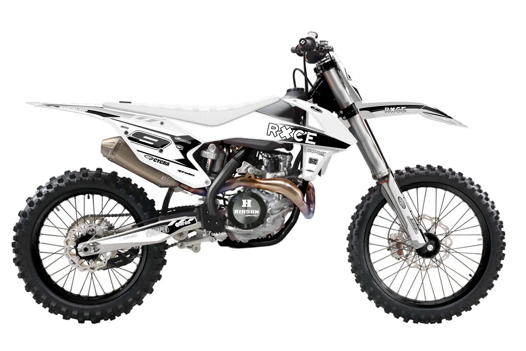 «CustomDesign9» — готовый комплект графики серии Maverick для KTM MX Graphic Kit KTM SX-F 350 2016. В комплекте: графика на бак и боковые облицовки, крылья (переднее и заднее), передний щиток, номерные таблички, защита вилки. Материал: ПВХ-винил 80 мкр с холодной ламинацией 300 мкр, общая толщина 380 мкр; покрытие глянцевое или матовое на выбор. Устойчив к UV-излучению, воде, бензину и мойке высокого давления. Клей акриловый на сольвентной основе — постоянный, для гибких пластиков. На простых поверхностях монтируется без нагрева; для сложных изгибов рекомендуем фен. Этот пресет можно заказать как есть или взять за основу в конструкторе: поменять цвета, добавить стартовый номер и свой бренд. Производство — 3–5 рабочих дней, доставка по России СДЭКом или Почтой, по СНГ — курьерскими службами.