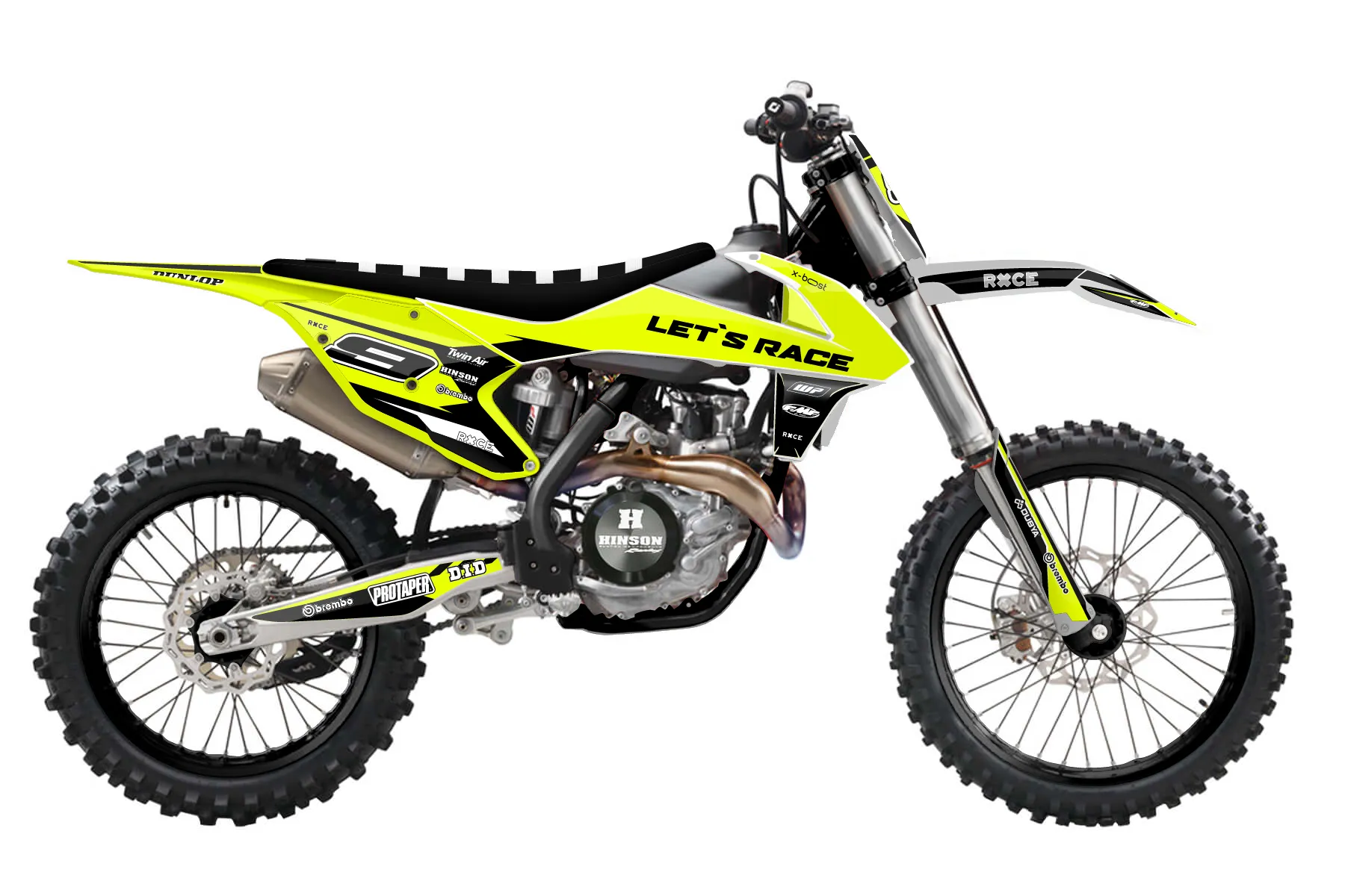 «Ryder Neon» — готовый комплект графики серии Maverick для KTM MX Graphic Kit KTM SX-F 350 2016. В комплекте: графика на бак и боковые облицовки, крылья (переднее и заднее), передний щиток, номерные таблички, защита вилки. Материал: ПВХ-винил 80 мкр с холодной ламинацией 300 мкр, общая толщина 380 мкр; покрытие глянцевое или матовое на выбор. Устойчив к UV-излучению, воде, бензину и мойке высокого давления. Клей акриловый на сольвентной основе — постоянный, для гибких пластиков. На простых поверхностях монтируется без нагрева; для сложных изгибов рекомендуем фен. Этот пресет можно заказать как есть или взять за основу в конструкторе: поменять цвета, добавить стартовый номер и свой бренд. Производство — 3–5 рабочих дней, доставка по России СДЭКом или Почтой, по СНГ — курьерскими службами.