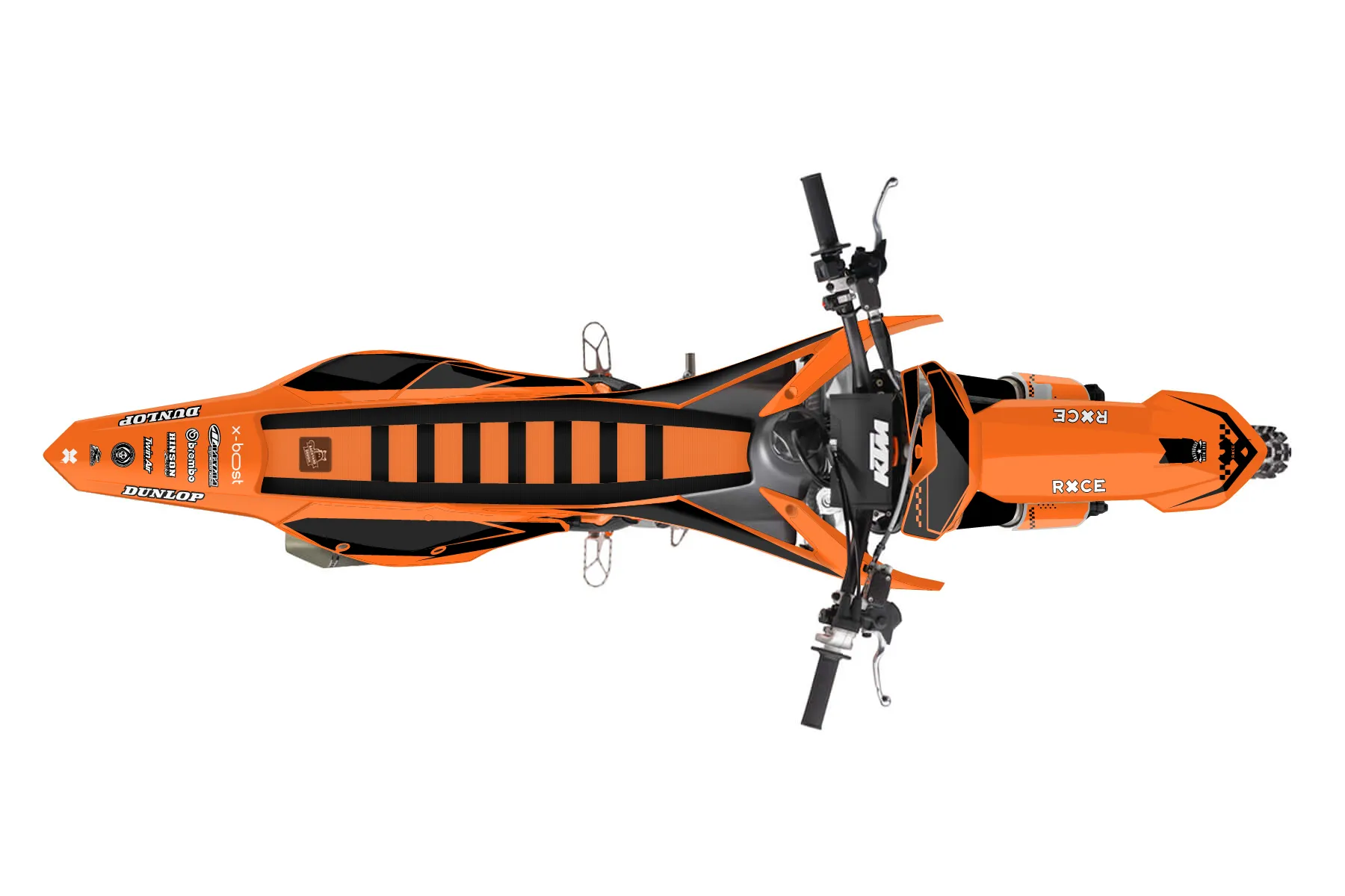 «Direction» — готовый комплект графики серии Staple для KTM MX Graphic Kit KTM SX-F 350 2016. В комплекте: графика на бак и боковые облицовки, крылья (переднее и заднее), передний щиток, номерные таблички, защита вилки. Материал: ПВХ-винил 80 мкр с холодной ламинацией 300 мкр, общая толщина 380 мкр; покрытие глянцевое или матовое на выбор. Устойчив к UV-излучению, воде, бензину и мойке высокого давления. Клей акриловый на сольвентной основе — постоянный, для гибких пластиков. На простых поверхностях монтируется без нагрева; для сложных изгибов рекомендуем фен. Этот пресет можно заказать как есть или взять за основу в конструкторе: поменять цвета, добавить стартовый номер и свой бренд. Производство — 3–5 рабочих дней, доставка по России СДЭКом или Почтой, по СНГ — курьерскими службами.
