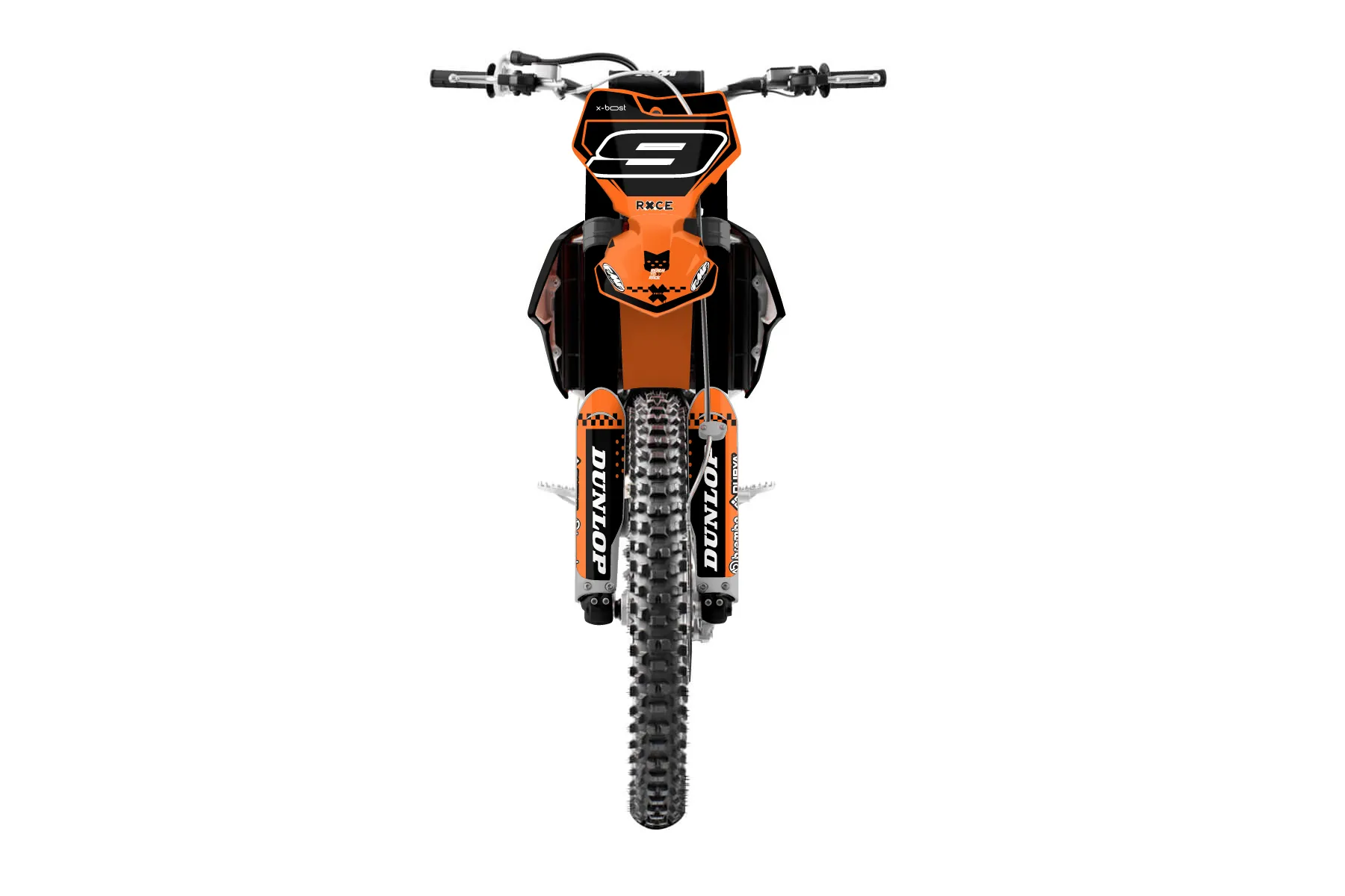 «RacerX» — готовый комплект графики серии Staple для KTM MX Graphic Kit KTM SX-F 350 2016. В комплекте: графика на бак и боковые облицовки, крылья (переднее и заднее), передний щиток, номерные таблички, защита вилки. Материал: ПВХ-винил 80 мкр с холодной ламинацией 300 мкр, общая толщина 380 мкр; покрытие глянцевое или матовое на выбор. Устойчив к UV-излучению, воде, бензину и мойке высокого давления. Клей акриловый на сольвентной основе — постоянный, для гибких пластиков. На простых поверхностях монтируется без нагрева; для сложных изгибов рекомендуем фен. Этот пресет можно заказать как есть или взять за основу в конструкторе: поменять цвета, добавить стартовый номер и свой бренд. Производство — 3–5 рабочих дней, доставка по России СДЭКом или Почтой, по СНГ — курьерскими службами.