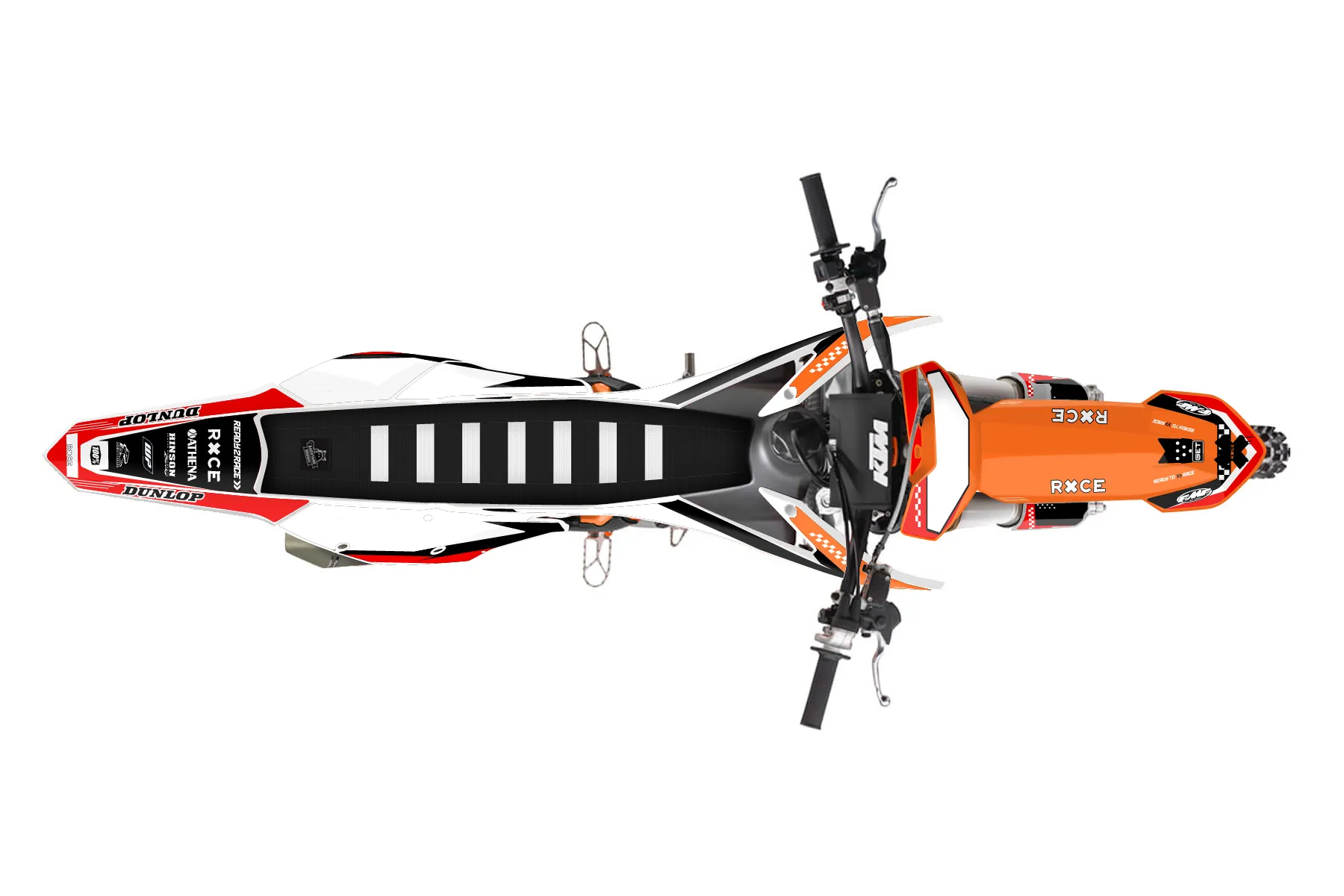 «Spirit» — готовый комплект графики серии Staple для KTM MX Graphic Kit KTM SX-F 350 2016. В комплекте: графика на бак и боковые облицовки, крылья (переднее и заднее), передний щиток, номерные таблички, защита вилки. Материал: ПВХ-винил 80 мкр с холодной ламинацией 300 мкр, общая толщина 380 мкр; покрытие глянцевое или матовое на выбор. Устойчив к UV-излучению, воде, бензину и мойке высокого давления. Клей акриловый на сольвентной основе — постоянный, для гибких пластиков. На простых поверхностях монтируется без нагрева; для сложных изгибов рекомендуем фен. Этот пресет можно заказать как есть или взять за основу в конструкторе: поменять цвета, добавить стартовый номер и свой бренд. Производство — 3–5 рабочих дней, доставка по России СДЭКом или Почтой, по СНГ — курьерскими службами.