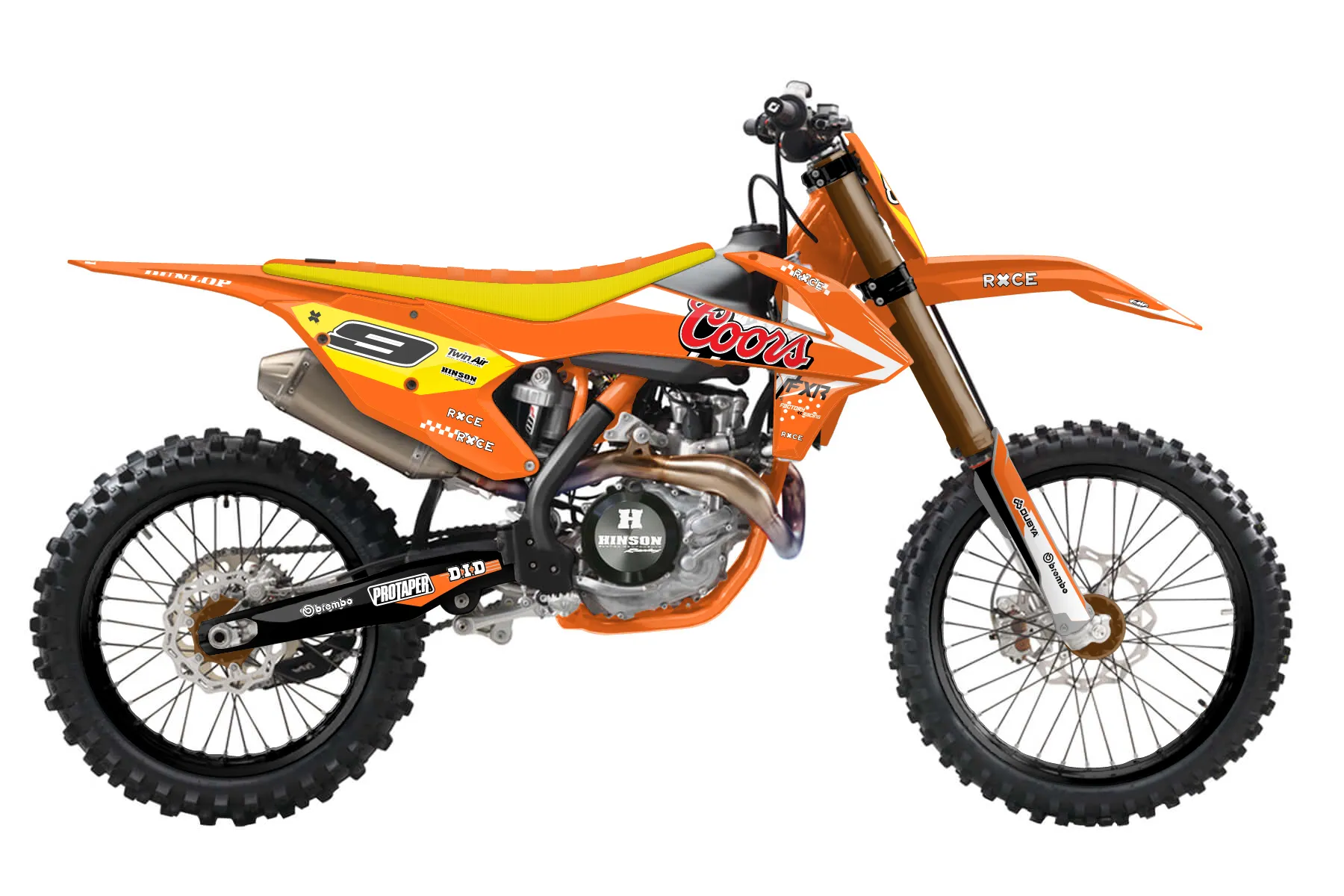 «treyyellow» — готовый комплект графики серии Staple для KTM MX Graphic Kit KTM SX-F 350 2016. В комплекте: графика на бак и боковые облицовки, крылья (переднее и заднее), передний щиток, номерные таблички, защита вилки. Материал: ПВХ-винил 80 мкр с холодной ламинацией 300 мкр, общая толщина 380 мкр; покрытие глянцевое или матовое на выбор. Устойчив к UV-излучению, воде, бензину и мойке высокого давления. Клей акриловый на сольвентной основе — постоянный, для гибких пластиков. На простых поверхностях монтируется без нагрева; для сложных изгибов рекомендуем фен. Этот пресет можно заказать как есть или взять за основу в конструкторе: поменять цвета, добавить стартовый номер и свой бренд. Производство — 3–5 рабочих дней, доставка по России СДЭКом или Почтой, по СНГ — курьерскими службами.