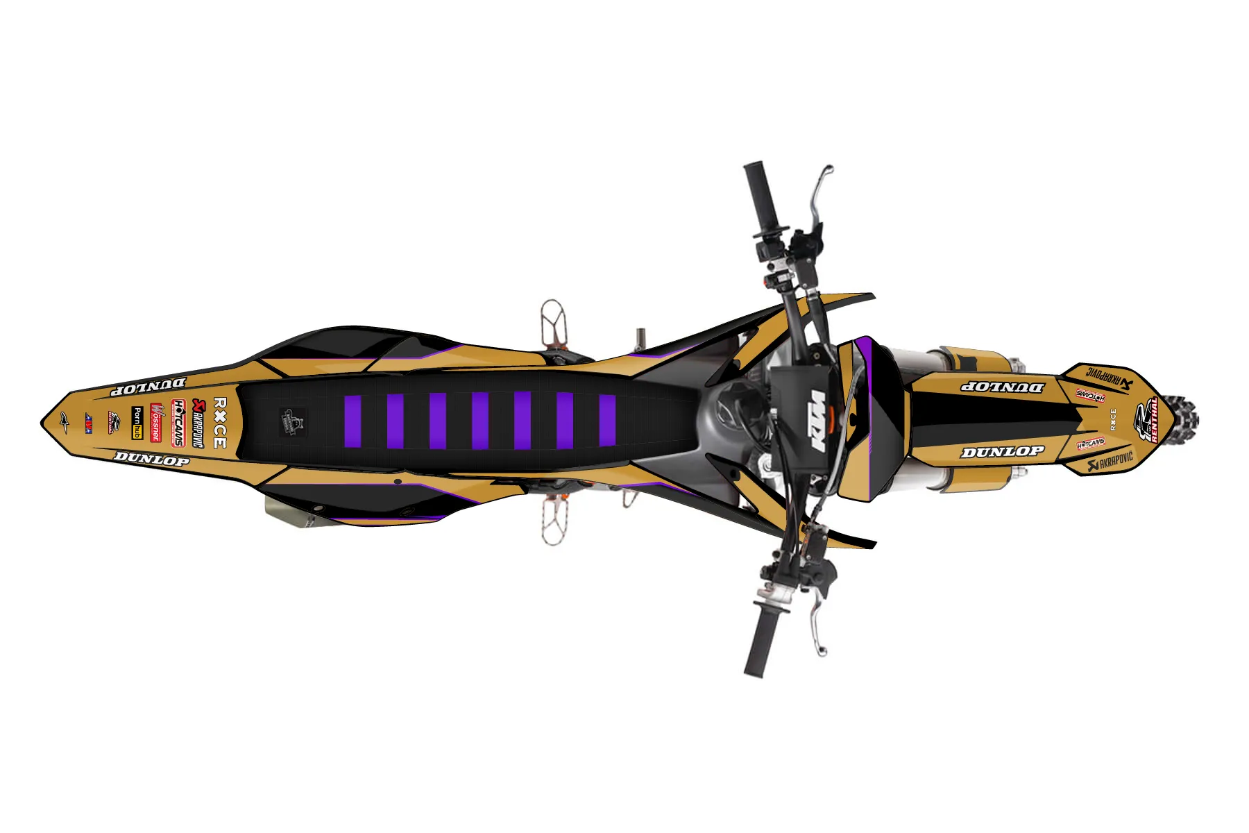 «sxf 350» — готовый комплект графики серии Untucked для KTM MX Graphic Kit KTM SX-F 350 2016. В комплекте: графика на бак и боковые облицовки, крылья (переднее и заднее), передний щиток, номерные таблички, защита вилки. Материал: ПВХ-винил 80 мкр с холодной ламинацией 300 мкр, общая толщина 380 мкр; покрытие глянцевое или матовое на выбор. Устойчив к UV-излучению, воде, бензину и мойке высокого давления. Клей акриловый на сольвентной основе — постоянный, для гибких пластиков. На простых поверхностях монтируется без нагрева; для сложных изгибов рекомендуем фен. Этот пресет можно заказать как есть или взять за основу в конструкторе: поменять цвета, добавить стартовый номер и свой бренд. Производство — 3–5 рабочих дней, доставка по России СДЭКом или Почтой, по СНГ — курьерскими службами.
