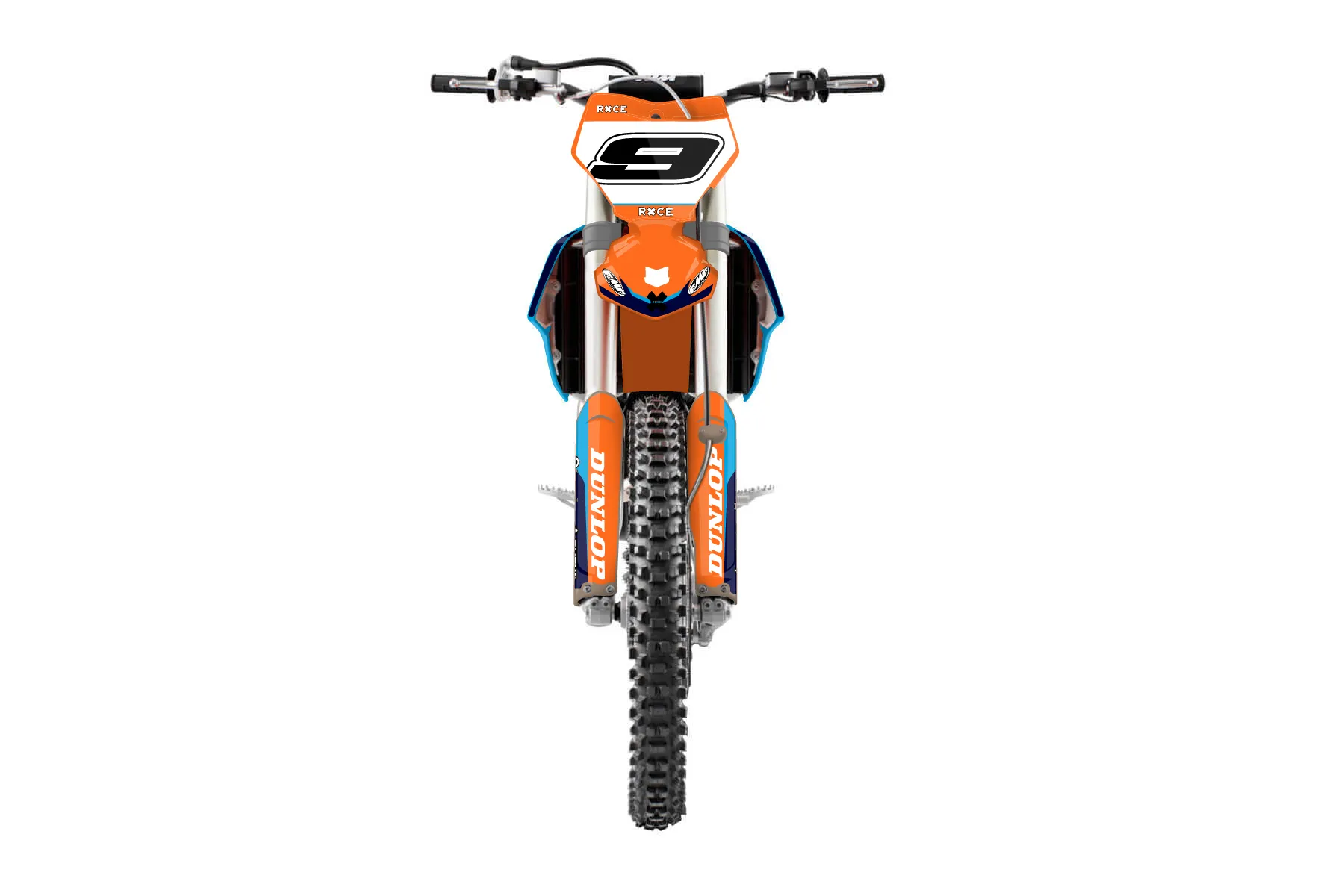 «Meta» — готовый комплект графики серии Flow для KTM MX Graphic Kit KTM SX-F 350 2019. В комплекте: графика на бак и боковые облицовки, крылья (переднее и заднее), передний щиток, номерные таблички, защита вилки. Материал: ПВХ-винил 80 мкр с холодной ламинацией 300 мкр, общая толщина 380 мкр; покрытие глянцевое или матовое на выбор. Устойчив к UV-излучению, воде, бензину и мойке высокого давления. Клей акриловый на сольвентной основе — постоянный, для гибких пластиков. На простых поверхностях монтируется без нагрева; для сложных изгибов рекомендуем фен. Этот пресет можно заказать как есть или взять за основу в конструкторе: поменять цвета, добавить стартовый номер и свой бренд. Производство — 3–5 рабочих дней, доставка по России СДЭКом или Почтой, по СНГ — курьерскими службами.