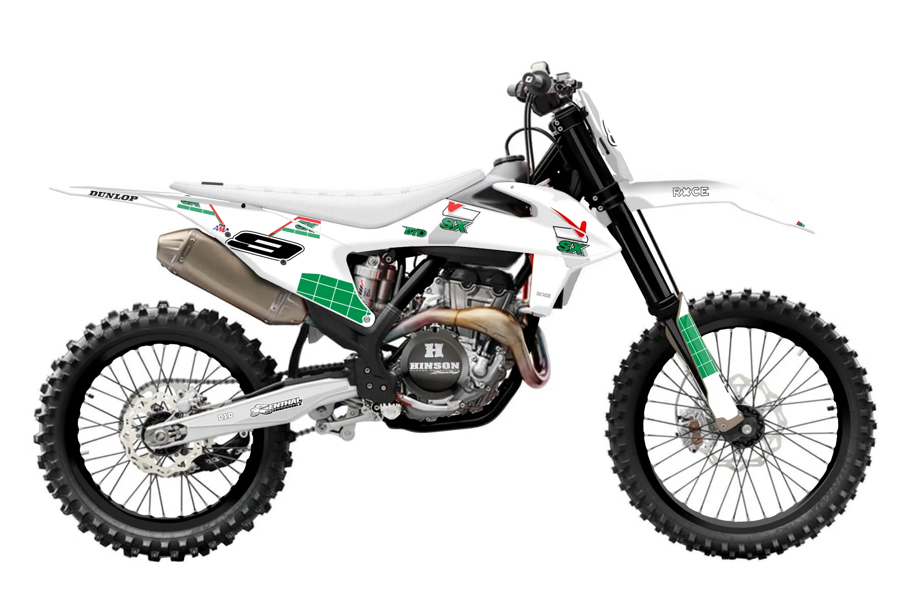 «Startup» — готовый комплект графики серии Flow для KTM MX Graphic Kit KTM SX-F 350 2019. В комплекте: графика на бак и боковые облицовки, крылья (переднее и заднее), передний щиток, номерные таблички, защита вилки. Материал: ПВХ-винил 80 мкр с холодной ламинацией 300 мкр, общая толщина 380 мкр; покрытие глянцевое или матовое на выбор. Устойчив к UV-излучению, воде, бензину и мойке высокого давления. Клей акриловый на сольвентной основе — постоянный, для гибких пластиков. На простых поверхностях монтируется без нагрева; для сложных изгибов рекомендуем фен. Этот пресет можно заказать как есть или взять за основу в конструкторе: поменять цвета, добавить стартовый номер и свой бренд. Производство — 3–5 рабочих дней, доставка по России СДЭКом или Почтой, по СНГ — курьерскими службами.