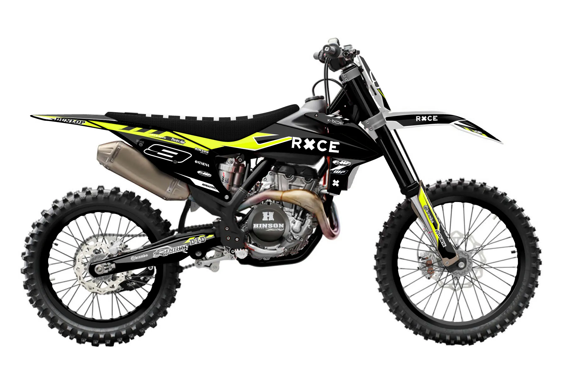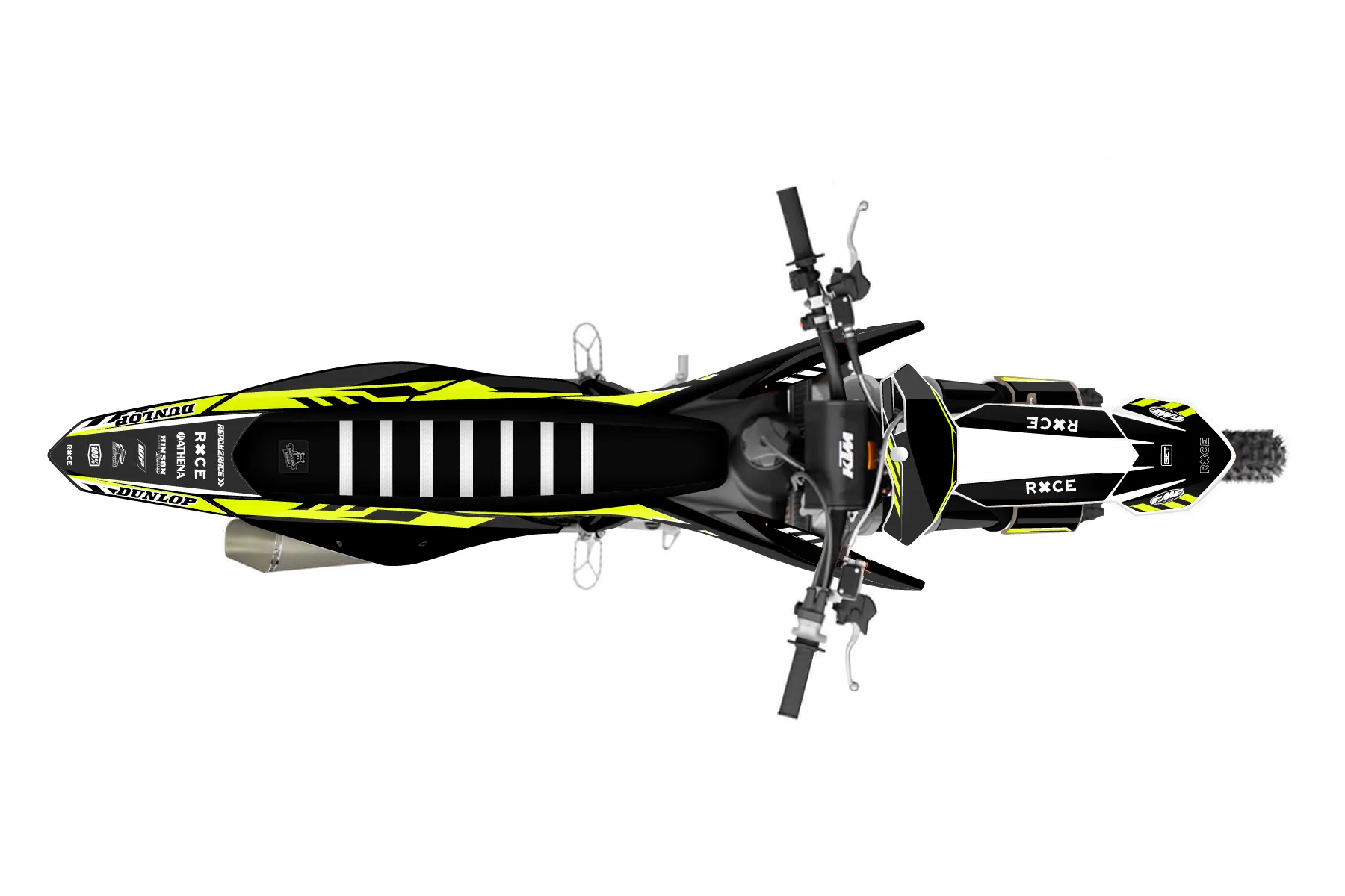 «Daze Fluo» — готовый комплект графики серии Maverick для KTM MX Graphic Kit KTM SX-F 350 2019. В комплекте: графика на бак и боковые облицовки, крылья (переднее и заднее), передний щиток, номерные таблички, защита вилки. Материал: ПВХ-винил 80 мкр с холодной ламинацией 300 мкр, общая толщина 380 мкр; покрытие глянцевое или матовое на выбор. Устойчив к UV-излучению, воде, бензину и мойке высокого давления. Клей акриловый на сольвентной основе — постоянный, для гибких пластиков. На простых поверхностях монтируется без нагрева; для сложных изгибов рекомендуем фен. Этот пресет можно заказать как есть или взять за основу в конструкторе: поменять цвета, добавить стартовый номер и свой бренд. Производство — 3–5 рабочих дней, доставка по России СДЭКом или Почтой, по СНГ — курьерскими службами.