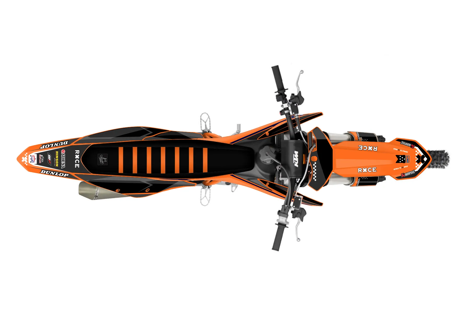«CustomDesign» — готовый комплект графики серии Staple для KTM MX Graphic Kit KTM SX-F 350 2019. В комплекте: графика на бак и боковые облицовки, крылья (переднее и заднее), передний щиток, номерные таблички, защита вилки. Материал: ПВХ-винил 80 мкр с холодной ламинацией 300 мкр, общая толщина 380 мкр; покрытие глянцевое или матовое на выбор. Устойчив к UV-излучению, воде, бензину и мойке высокого давления. Клей акриловый на сольвентной основе — постоянный, для гибких пластиков. На простых поверхностях монтируется без нагрева; для сложных изгибов рекомендуем фен. Этот пресет можно заказать как есть или взять за основу в конструкторе: поменять цвета, добавить стартовый номер и свой бренд. Производство — 3–5 рабочих дней, доставка по России СДЭКом или Почтой, по СНГ — курьерскими службами.