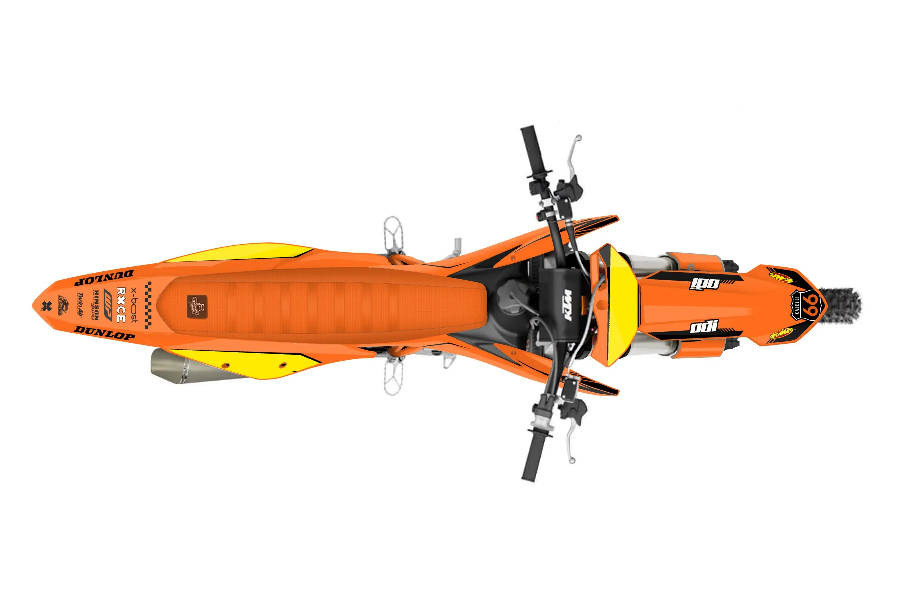 «bike» — готовый комплект графики серии Untucked для KTM MX Graphic Kit KTM SX-F 350 2019. В комплекте: графика на бак и боковые облицовки, крылья (переднее и заднее), передний щиток, номерные таблички, защита вилки. Материал: ПВХ-винил 80 мкр с холодной ламинацией 300 мкр, общая толщина 380 мкр; покрытие глянцевое или матовое на выбор. Устойчив к UV-излучению, воде, бензину и мойке высокого давления. Клей акриловый на сольвентной основе — постоянный, для гибких пластиков. На простых поверхностях монтируется без нагрева; для сложных изгибов рекомендуем фен. Этот пресет можно заказать как есть или взять за основу в конструкторе: поменять цвета, добавить стартовый номер и свой бренд. Производство — 3–5 рабочих дней, доставка по России СДЭКом или Почтой, по СНГ — курьерскими службами.