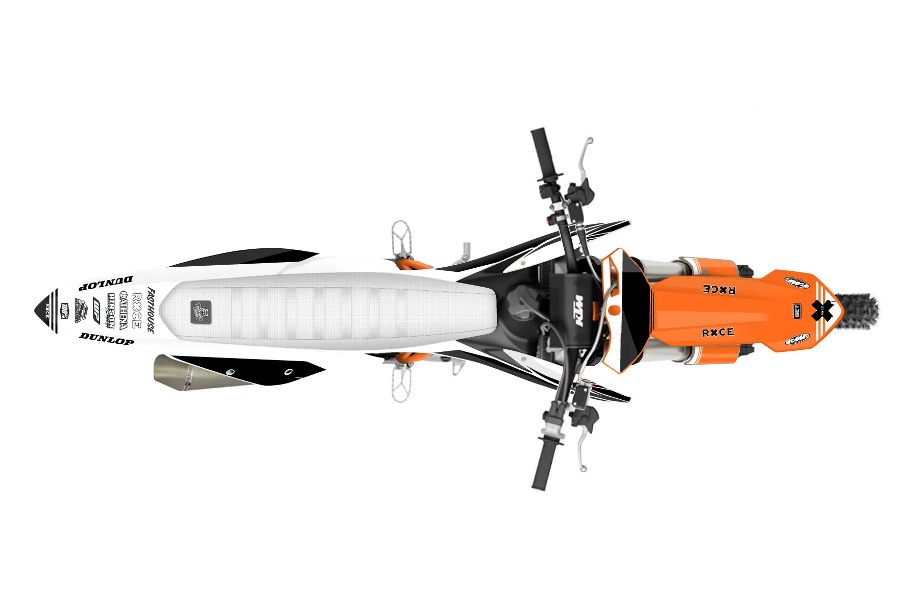 «Costume » — готовый комплект графики серии Untucked для KTM MX Graphic Kit KTM SX-F 350 2019. В комплекте: графика на бак и боковые облицовки, крылья (переднее и заднее), передний щиток, номерные таблички, защита вилки. Материал: ПВХ-винил 80 мкр с холодной ламинацией 300 мкр, общая толщина 380 мкр; покрытие глянцевое или матовое на выбор. Устойчив к UV-излучению, воде, бензину и мойке высокого давления. Клей акриловый на сольвентной основе — постоянный, для гибких пластиков. На простых поверхностях монтируется без нагрева; для сложных изгибов рекомендуем фен. Этот пресет можно заказать как есть или взять за основу в конструкторе: поменять цвета, добавить стартовый номер и свой бренд. Производство — 3–5 рабочих дней, доставка по России СДЭКом или Почтой, по СНГ — курьерскими службами.