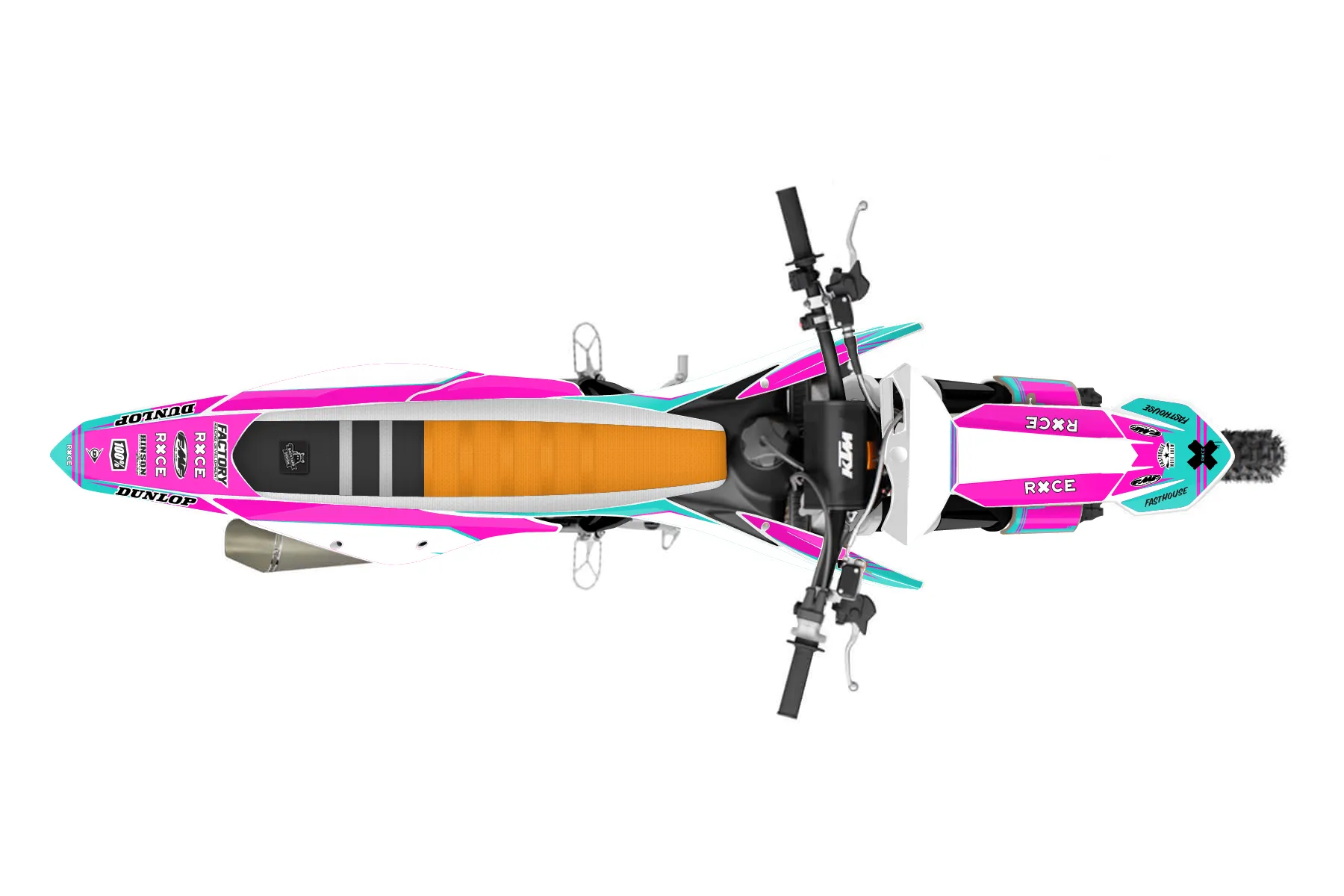 «porn» — готовый комплект графики серии Untucked для KTM MX Graphic Kit KTM SX-F 350 2019. В комплекте: графика на бак и боковые облицовки, крылья (переднее и заднее), передний щиток, номерные таблички, защита вилки. Материал: ПВХ-винил 80 мкр с холодной ламинацией 300 мкр, общая толщина 380 мкр; покрытие глянцевое или матовое на выбор. Устойчив к UV-излучению, воде, бензину и мойке высокого давления. Клей акриловый на сольвентной основе — постоянный, для гибких пластиков. На простых поверхностях монтируется без нагрева; для сложных изгибов рекомендуем фен. Этот пресет можно заказать как есть или взять за основу в конструкторе: поменять цвета, добавить стартовый номер и свой бренд. Производство — 3–5 рабочих дней, доставка по России СДЭКом или Почтой, по СНГ — курьерскими службами.