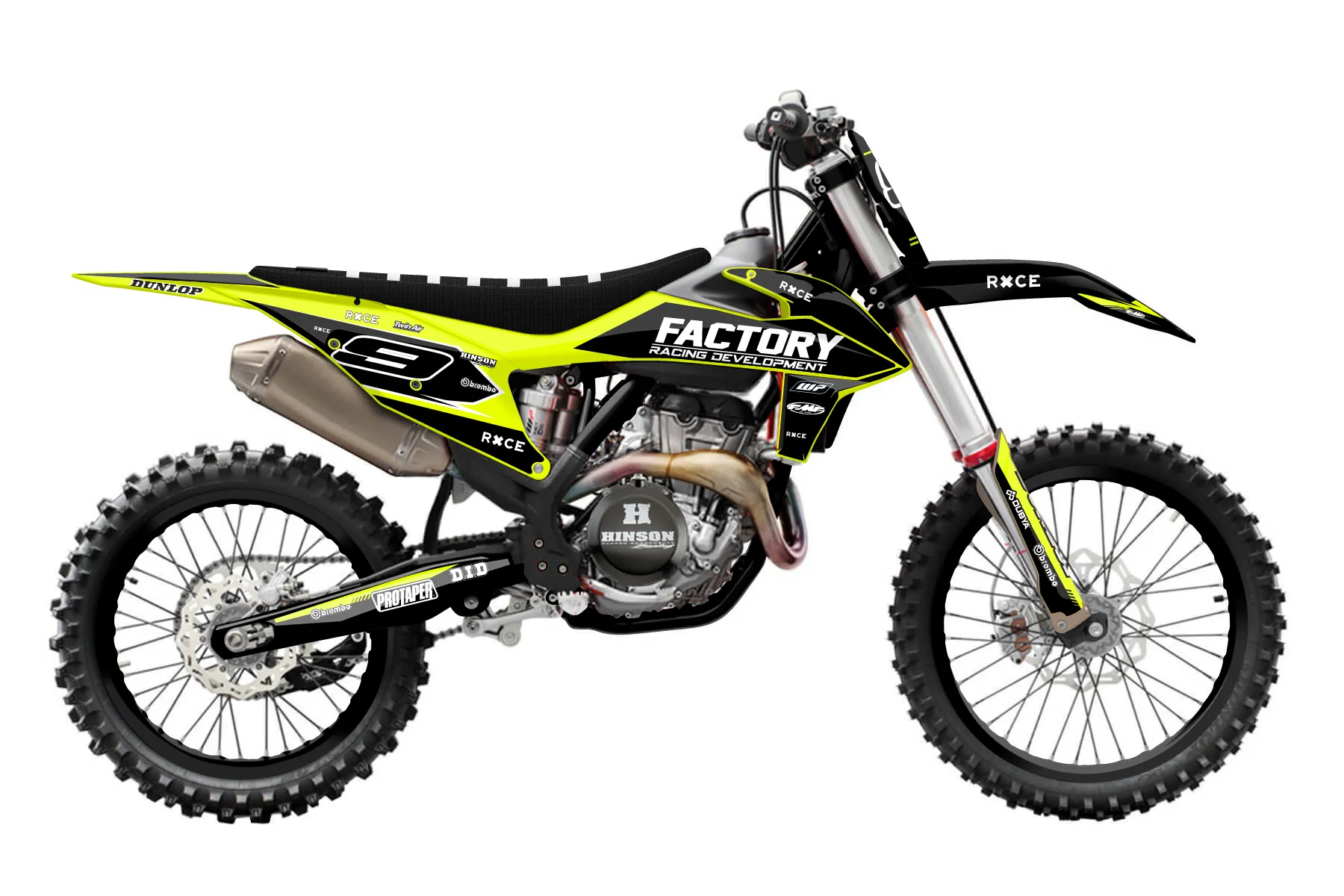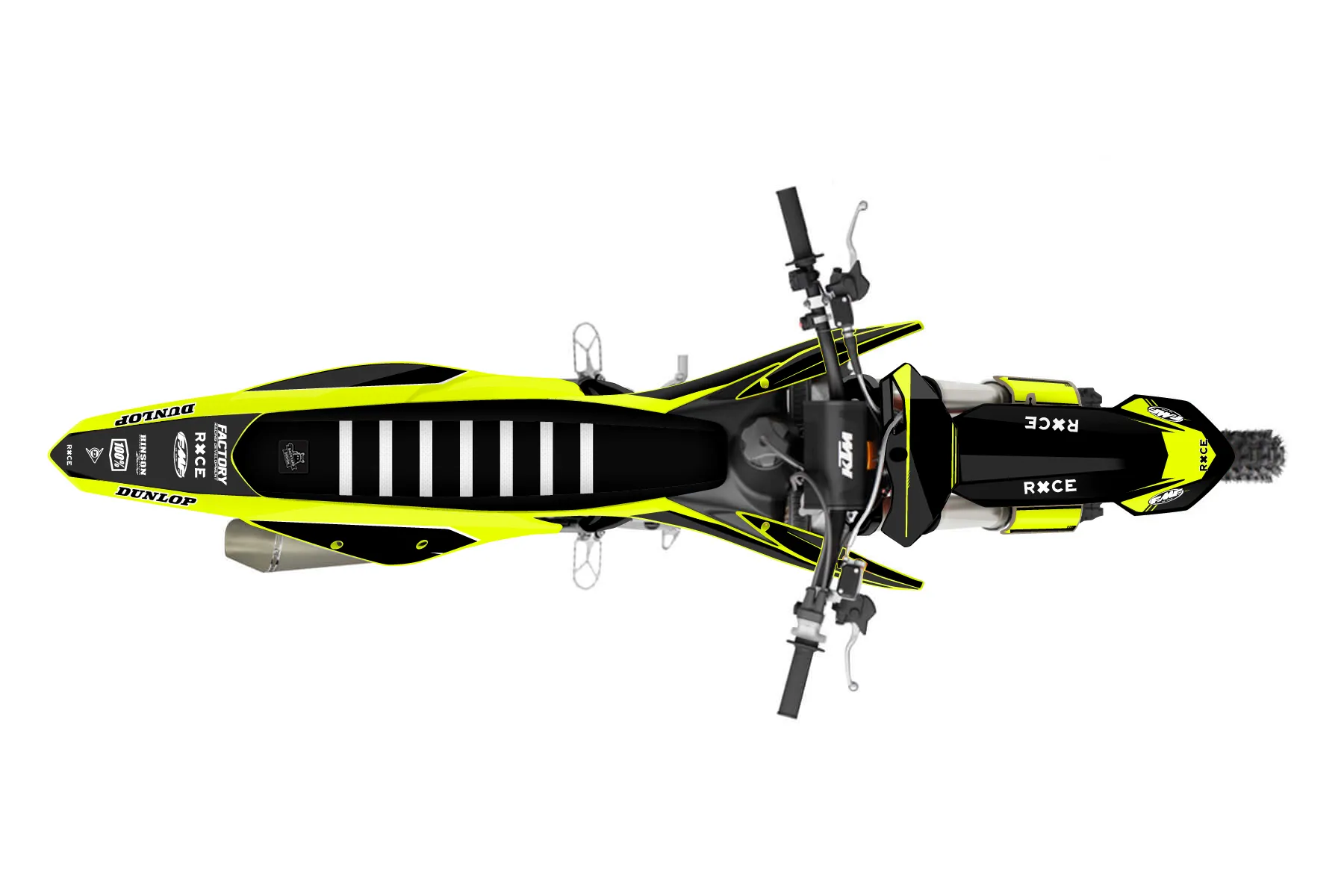 «Style Neon» — готовый комплект графики серии Untucked для KTM MX Graphic Kit KTM SX-F 350 2019. В комплекте: графика на бак и боковые облицовки, крылья (переднее и заднее), передний щиток, номерные таблички, защита вилки. Материал: ПВХ-винил 80 мкр с холодной ламинацией 300 мкр, общая толщина 380 мкр; покрытие глянцевое или матовое на выбор. Устойчив к UV-излучению, воде, бензину и мойке высокого давления. Клей акриловый на сольвентной основе — постоянный, для гибких пластиков. На простых поверхностях монтируется без нагрева; для сложных изгибов рекомендуем фен. Этот пресет можно заказать как есть или взять за основу в конструкторе: поменять цвета, добавить стартовый номер и свой бренд. Производство — 3–5 рабочих дней, доставка по России СДЭКом или Почтой, по СНГ — курьерскими службами.