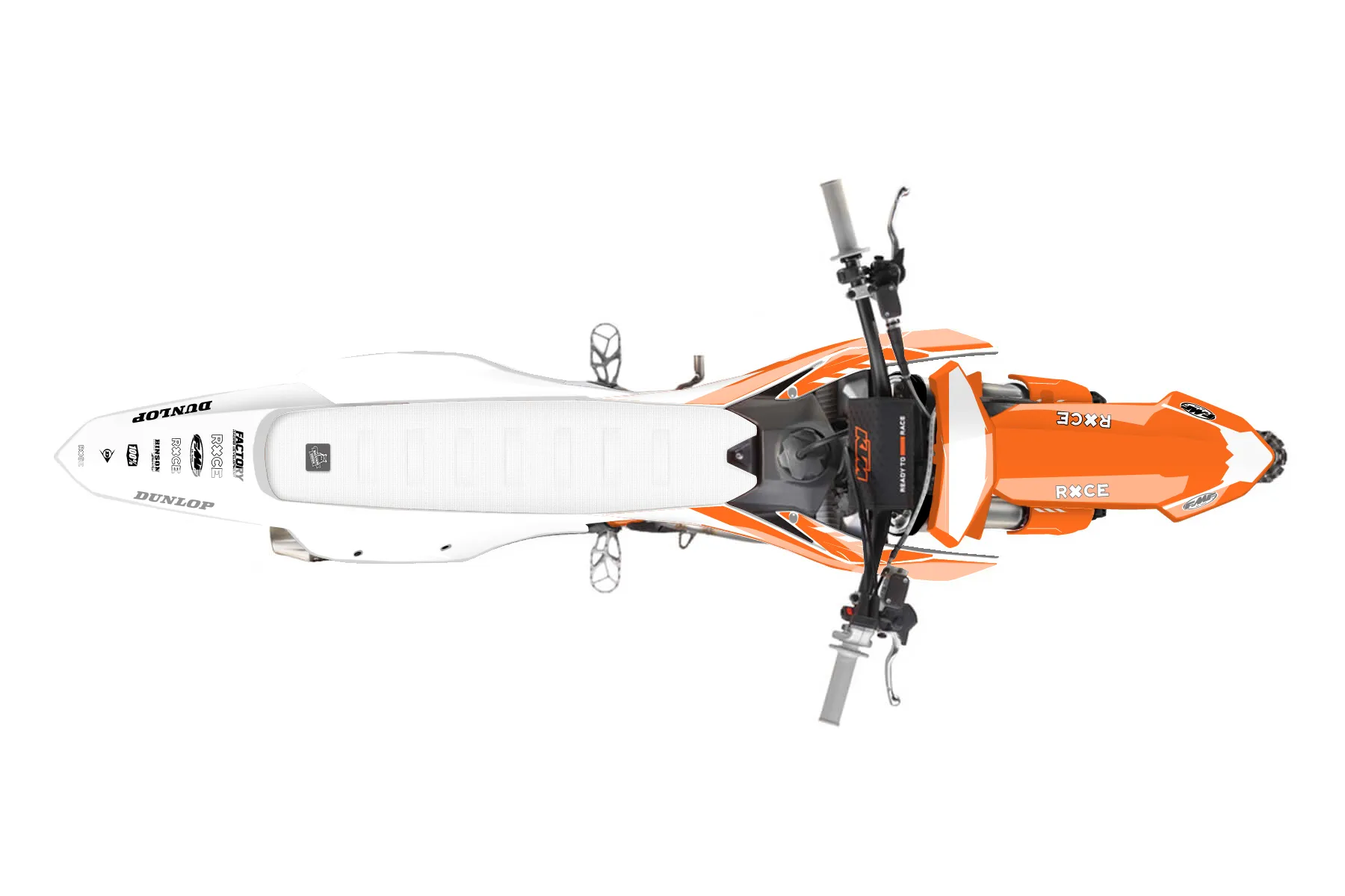 «Bones» — готовый комплект графики серии Maverick для KTM MX Graphic Kit KTM SX-F 350 2023. В комплекте: графика на бак и боковые облицовки, крылья (переднее и заднее), передний щиток, номерные таблички, защита вилки. Материал: ПВХ-винил 80 мкр с холодной ламинацией 300 мкр, общая толщина 380 мкр; покрытие глянцевое или матовое на выбор. Устойчив к UV-излучению, воде, бензину и мойке высокого давления. Клей акриловый на сольвентной основе — постоянный, для гибких пластиков. На простых поверхностях монтируется без нагрева; для сложных изгибов рекомендуем фен. Этот пресет можно заказать как есть или взять за основу в конструкторе: поменять цвета, добавить стартовый номер и свой бренд. Производство — 3–5 рабочих дней, доставка по России СДЭКом или Почтой, по СНГ — курьерскими службами.