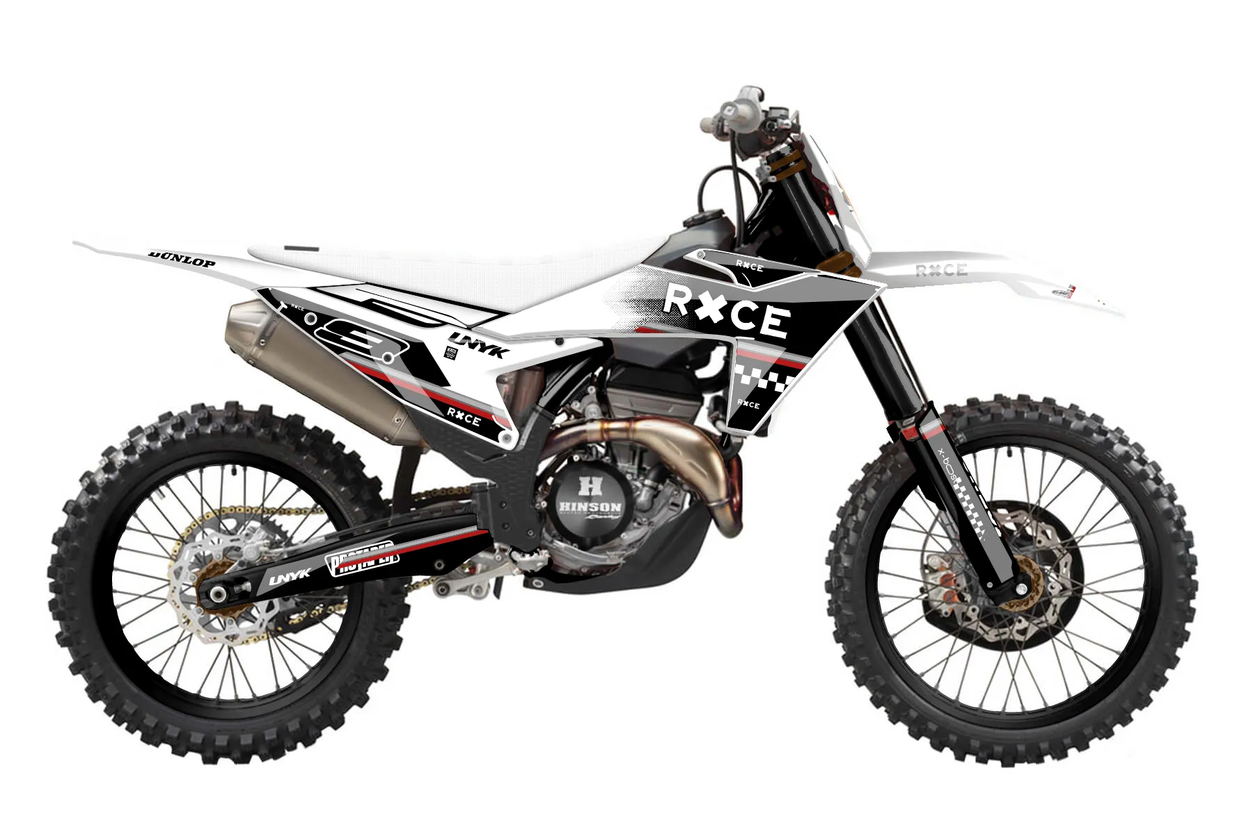 «Speedy» — готовый комплект графики серии Maverick для KTM MX Graphic Kit KTM SX-F 350 2023. В комплекте: графика на бак и боковые облицовки, крылья (переднее и заднее), передний щиток, номерные таблички, защита вилки. Материал: ПВХ-винил 80 мкр с холодной ламинацией 300 мкр, общая толщина 380 мкр; покрытие глянцевое или матовое на выбор. Устойчив к UV-излучению, воде, бензину и мойке высокого давления. Клей акриловый на сольвентной основе — постоянный, для гибких пластиков. На простых поверхностях монтируется без нагрева; для сложных изгибов рекомендуем фен. Этот пресет можно заказать как есть или взять за основу в конструкторе: поменять цвета, добавить стартовый номер и свой бренд. Производство — 3–5 рабочих дней, доставка по России СДЭКом или Почтой, по СНГ — курьерскими службами.