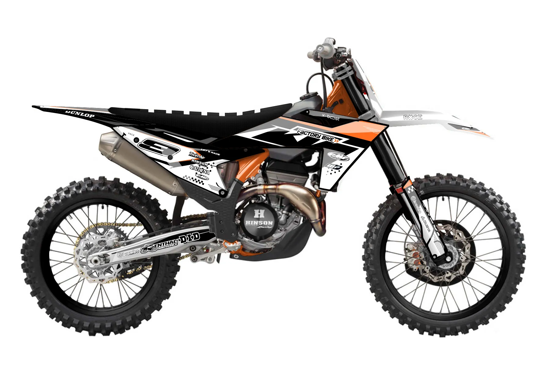 «Chef» — готовый комплект графики серии Staple для KTM MX Graphic Kit KTM SX-F 350 2023. В комплекте: графика на бак и боковые облицовки, крылья (переднее и заднее), передний щиток, номерные таблички, защита вилки. Материал: ПВХ-винил 80 мкр с холодной ламинацией 300 мкр, общая толщина 380 мкр; покрытие глянцевое или матовое на выбор. Устойчив к UV-излучению, воде, бензину и мойке высокого давления. Клей акриловый на сольвентной основе — постоянный, для гибких пластиков. На простых поверхностях монтируется без нагрева; для сложных изгибов рекомендуем фен. Этот пресет можно заказать как есть или взять за основу в конструкторе: поменять цвета, добавить стартовый номер и свой бренд. Производство — 3–5 рабочих дней, доставка по России СДЭКом или Почтой, по СНГ — курьерскими службами.