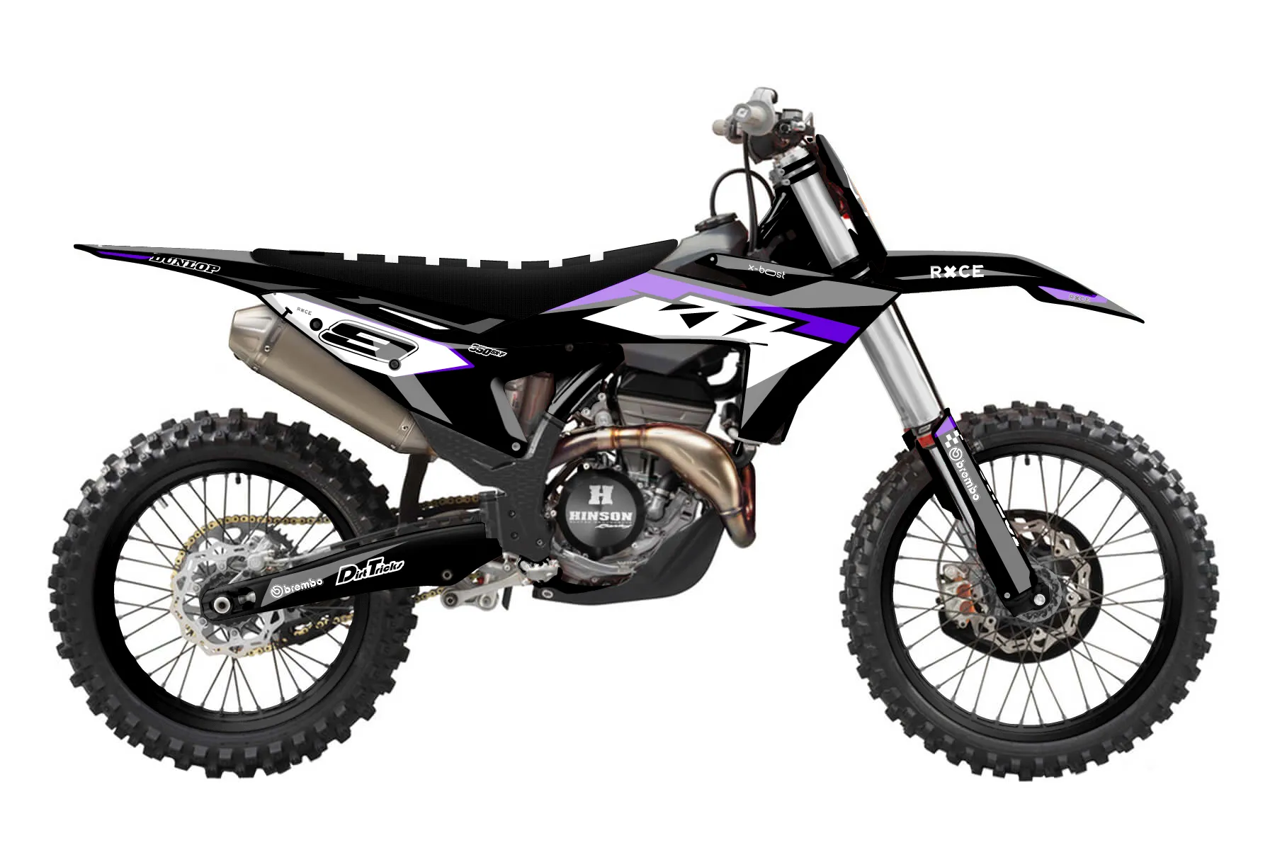 «Chrome Purp Elephant» — готовый комплект графики серии Staple для KTM MX Graphic Kit KTM SX-F 350 2023. В комплекте: графика на бак и боковые облицовки, крылья (переднее и заднее), передний щиток, номерные таблички, защита вилки. Материал: ПВХ-винил 80 мкр с холодной ламинацией 300 мкр, общая толщина 380 мкр; покрытие глянцевое или матовое на выбор. Устойчив к UV-излучению, воде, бензину и мойке высокого давления. Клей акриловый на сольвентной основе — постоянный, для гибких пластиков. На простых поверхностях монтируется без нагрева; для сложных изгибов рекомендуем фен. Этот пресет можно заказать как есть или взять за основу в конструкторе: поменять цвета, добавить стартовый номер и свой бренд. Производство — 3–5 рабочих дней, доставка по России СДЭКом или Почтой, по СНГ — курьерскими службами.