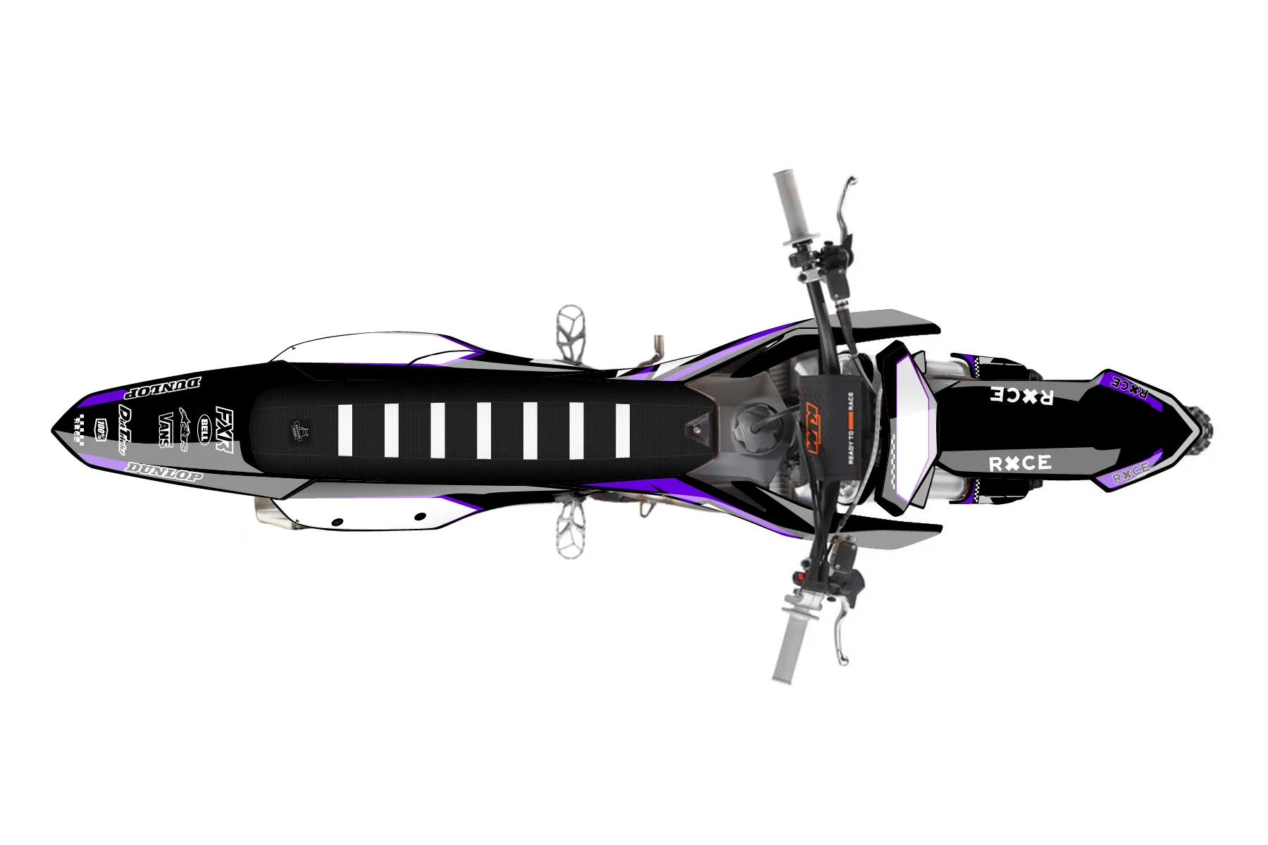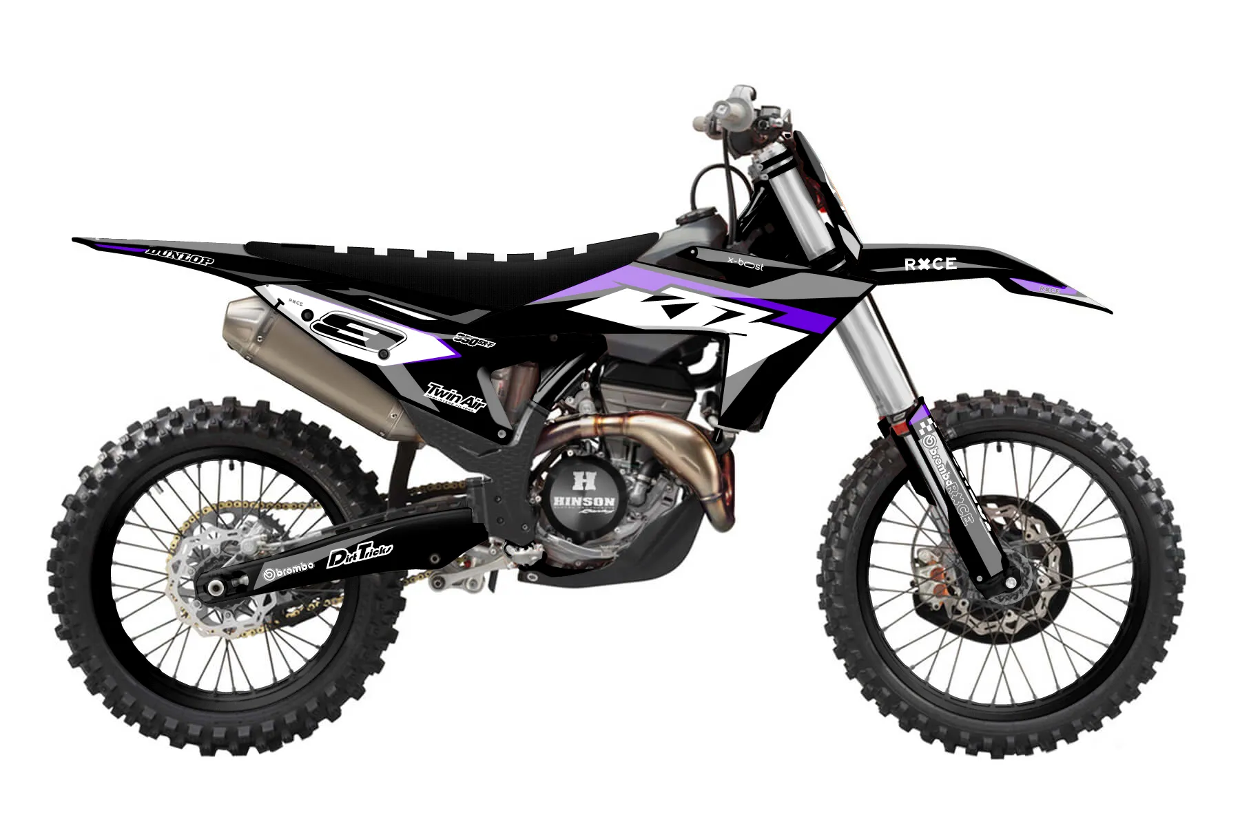 «CustomDesign 10/29/24» — готовый комплект графики серии Staple для KTM MX Graphic Kit KTM SX-F 350 2023. В комплекте: графика на бак и боковые облицовки, крылья (переднее и заднее), передний щиток, номерные таблички, защита вилки. Материал: ПВХ-винил 80 мкр с холодной ламинацией 300 мкр, общая толщина 380 мкр; покрытие глянцевое или матовое на выбор. Устойчив к UV-излучению, воде, бензину и мойке высокого давления. Клей акриловый на сольвентной основе — постоянный, для гибких пластиков. На простых поверхностях монтируется без нагрева; для сложных изгибов рекомендуем фен. Этот пресет можно заказать как есть или взять за основу в конструкторе: поменять цвета, добавить стартовый номер и свой бренд. Производство — 3–5 рабочих дней, доставка по России СДЭКом или Почтой, по СНГ — курьерскими службами.