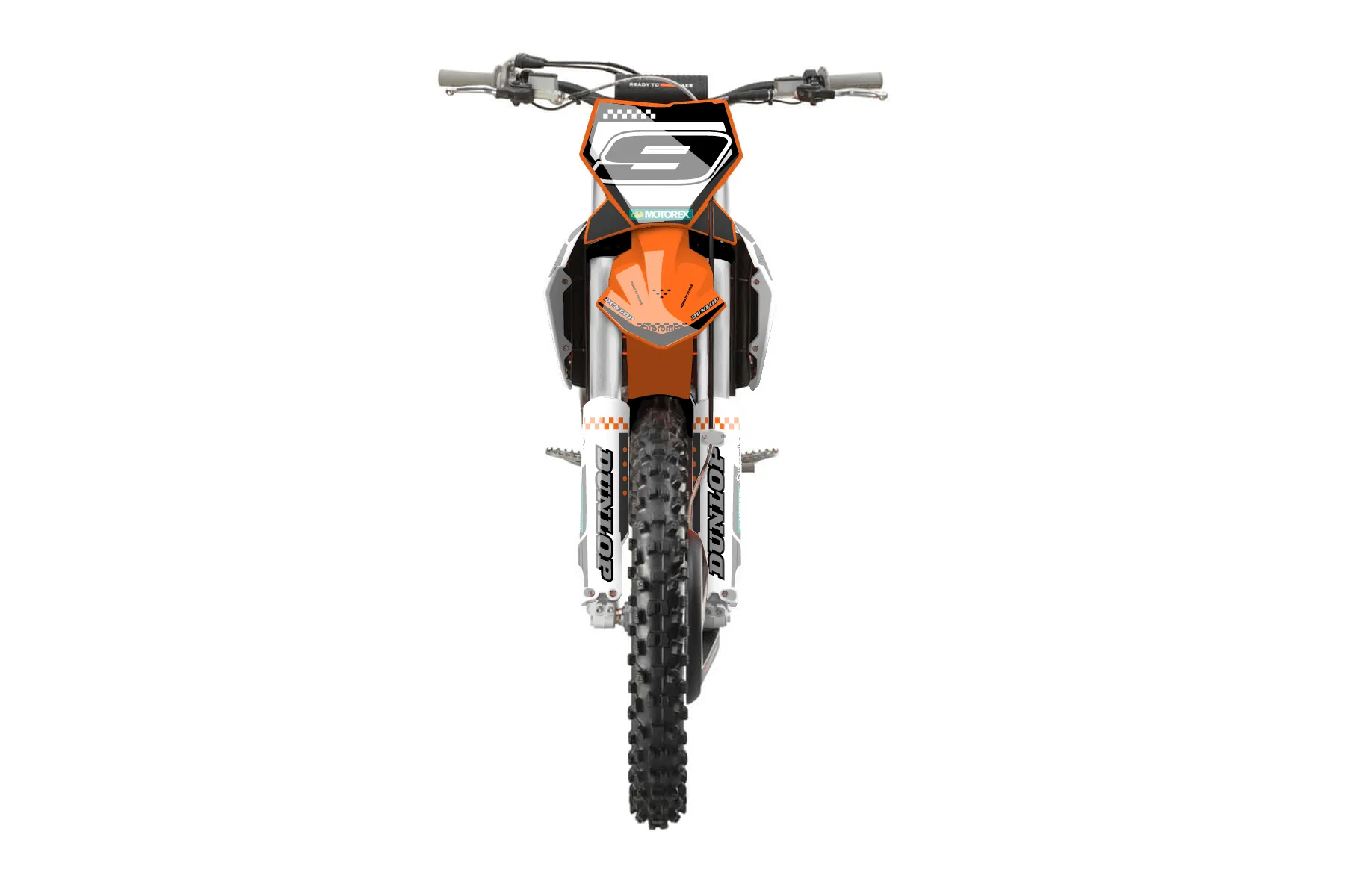 «KTM 350 SX-F Design» — готовый комплект графики серии Staple для KTM MX Graphic Kit KTM SX-F 350 2023. В комплекте: графика на бак и боковые облицовки, крылья (переднее и заднее), передний щиток, номерные таблички, защита вилки. Материал: ПВХ-винил 80 мкр с холодной ламинацией 300 мкр, общая толщина 380 мкр; покрытие глянцевое или матовое на выбор. Устойчив к UV-излучению, воде, бензину и мойке высокого давления. Клей акриловый на сольвентной основе — постоянный, для гибких пластиков. На простых поверхностях монтируется без нагрева; для сложных изгибов рекомендуем фен. Этот пресет можно заказать как есть или взять за основу в конструкторе: поменять цвета, добавить стартовый номер и свой бренд. Производство — 3–5 рабочих дней, доставка по России СДЭКом или Почтой, по СНГ — курьерскими службами.
