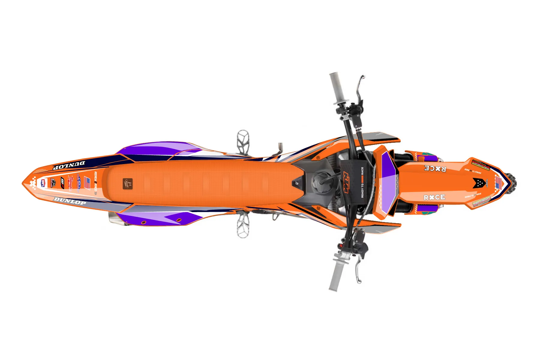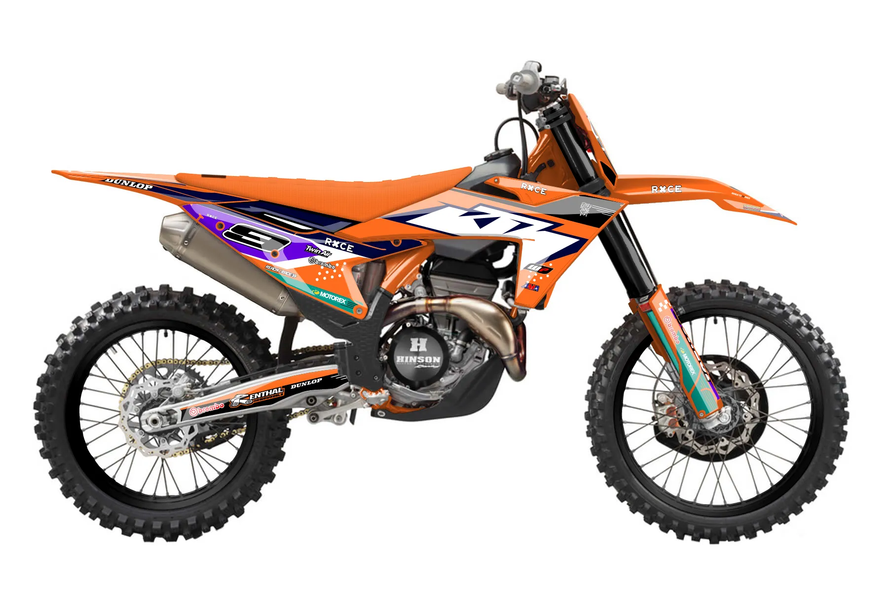 «Race grafics » — готовый комплект графики серии Staple для KTM MX Graphic Kit KTM SX-F 350 2023. В комплекте: графика на бак и боковые облицовки, крылья (переднее и заднее), передний щиток, номерные таблички, защита вилки. Материал: ПВХ-винил 80 мкр с холодной ламинацией 300 мкр, общая толщина 380 мкр; покрытие глянцевое или матовое на выбор. Устойчив к UV-излучению, воде, бензину и мойке высокого давления. Клей акриловый на сольвентной основе — постоянный, для гибких пластиков. На простых поверхностях монтируется без нагрева; для сложных изгибов рекомендуем фен. Этот пресет можно заказать как есть или взять за основу в конструкторе: поменять цвета, добавить стартовый номер и свой бренд. Производство — 3–5 рабочих дней, доставка по России СДЭКом или Почтой, по СНГ — курьерскими службами.