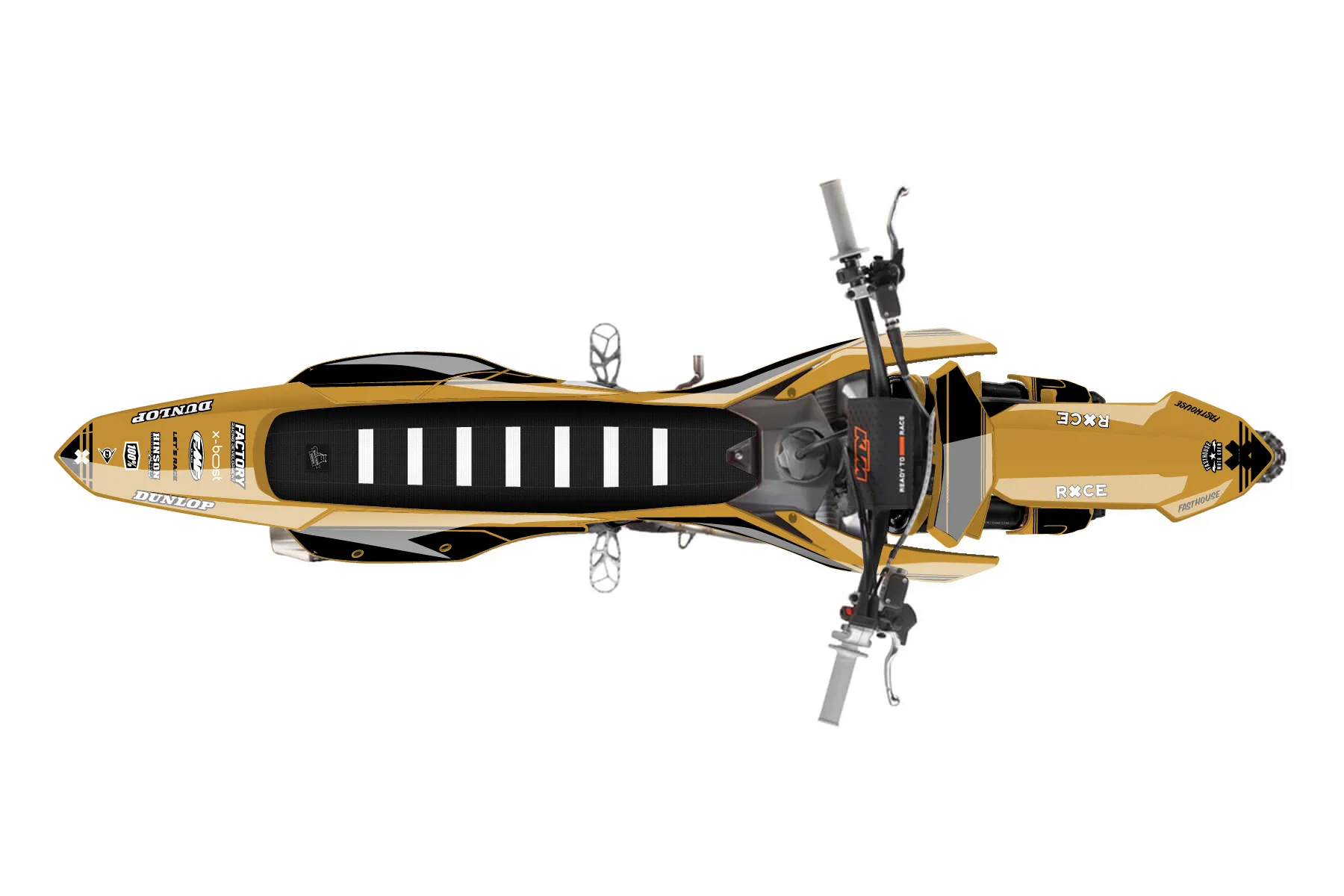 «Calm» — готовый комплект графики серии Untucked для KTM MX Graphic Kit KTM SX-F 350 2023. В комплекте: графика на бак и боковые облицовки, крылья (переднее и заднее), передний щиток, номерные таблички, защита вилки. Материал: ПВХ-винил 80 мкр с холодной ламинацией 300 мкр, общая толщина 380 мкр; покрытие глянцевое или матовое на выбор. Устойчив к UV-излучению, воде, бензину и мойке высокого давления. Клей акриловый на сольвентной основе — постоянный, для гибких пластиков. На простых поверхностях монтируется без нагрева; для сложных изгибов рекомендуем фен. Этот пресет можно заказать как есть или взять за основу в конструкторе: поменять цвета, добавить стартовый номер и свой бренд. Производство — 3–5 рабочих дней, доставка по России СДЭКом или Почтой, по СНГ — курьерскими службами.
