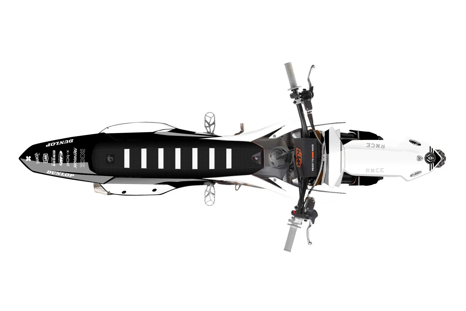 «Clear» — готовый комплект графики серии Untucked для KTM MX Graphic Kit KTM SX-F 350 2023. В комплекте: графика на бак и боковые облицовки, крылья (переднее и заднее), передний щиток, номерные таблички, защита вилки. Материал: ПВХ-винил 80 мкр с холодной ламинацией 300 мкр, общая толщина 380 мкр; покрытие глянцевое или матовое на выбор. Устойчив к UV-излучению, воде, бензину и мойке высокого давления. Клей акриловый на сольвентной основе — постоянный, для гибких пластиков. На простых поверхностях монтируется без нагрева; для сложных изгибов рекомендуем фен. Этот пресет можно заказать как есть или взять за основу в конструкторе: поменять цвета, добавить стартовый номер и свой бренд. Производство — 3–5 рабочих дней, доставка по России СДЭКом или Почтой, по СНГ — курьерскими службами.