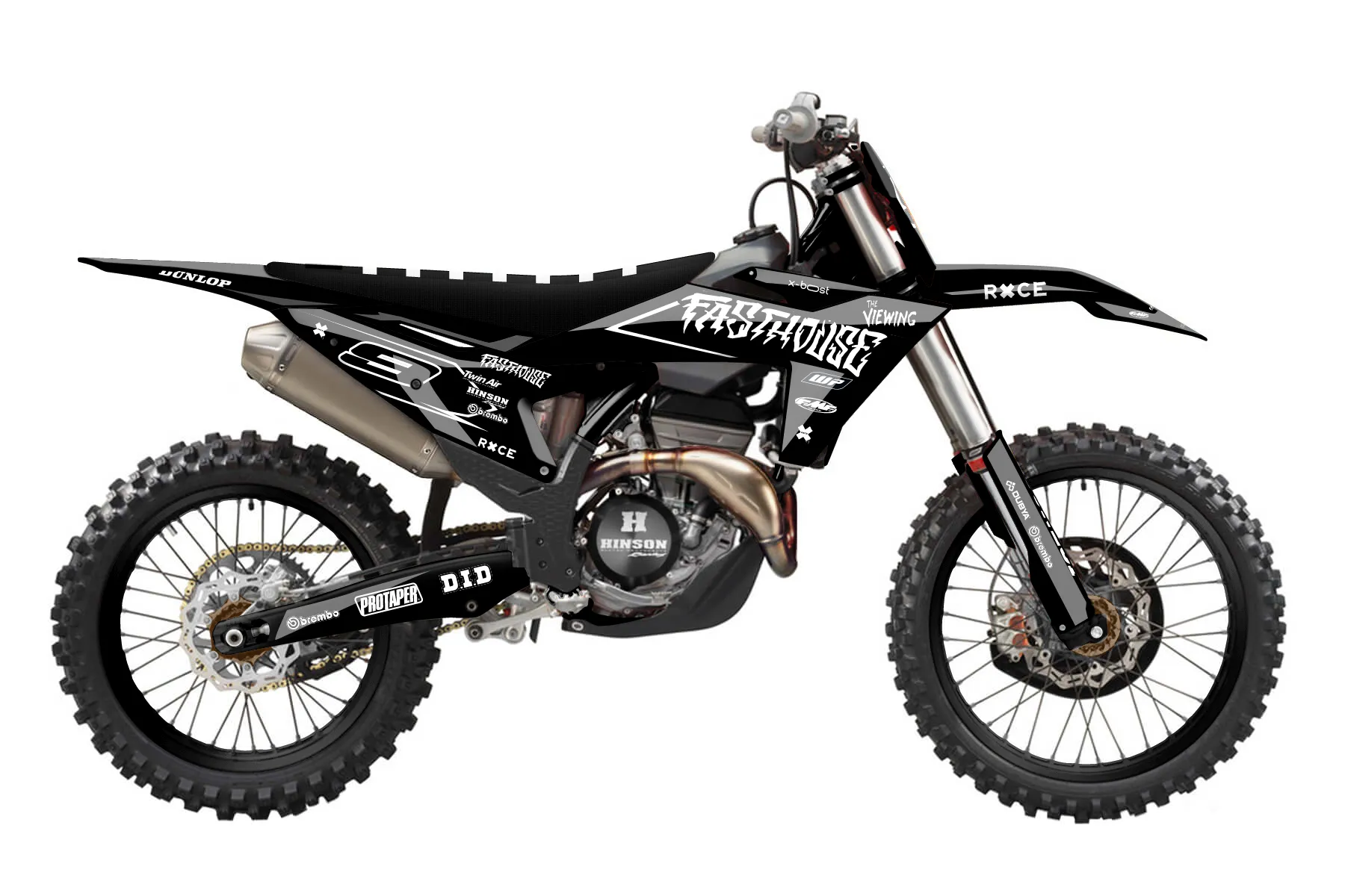 «Speedhouse» — готовый комплект графики серии Untucked для KTM MX Graphic Kit KTM SX-F 350 2023. В комплекте: графика на бак и боковые облицовки, крылья (переднее и заднее), передний щиток, номерные таблички, защита вилки. Материал: ПВХ-винил 80 мкр с холодной ламинацией 300 мкр, общая толщина 380 мкр; покрытие глянцевое или матовое на выбор. Устойчив к UV-излучению, воде, бензину и мойке высокого давления. Клей акриловый на сольвентной основе — постоянный, для гибких пластиков. На простых поверхностях монтируется без нагрева; для сложных изгибов рекомендуем фен. Этот пресет можно заказать как есть или взять за основу в конструкторе: поменять цвета, добавить стартовый номер и свой бренд. Производство — 3–5 рабочих дней, доставка по России СДЭКом или Почтой, по СНГ — курьерскими службами.