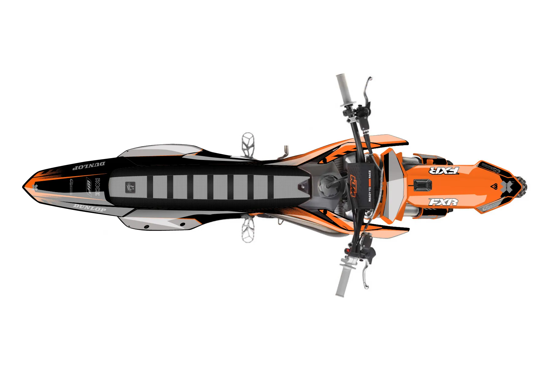 «350xcf pt 1 orange/black» — готовый комплект графики серии Maverick для KTM MX Graphic Kit KTM SX-F 350 2025. В комплекте: графика на бак и боковые облицовки, крылья (переднее и заднее), передний щиток, номерные таблички, защита вилки. Материал: ПВХ-винил 80 мкр с холодной ламинацией 300 мкр, общая толщина 380 мкр; покрытие глянцевое или матовое на выбор. Устойчив к UV-излучению, воде, бензину и мойке высокого давления. Клей акриловый на сольвентной основе — постоянный, для гибких пластиков. На простых поверхностях монтируется без нагрева; для сложных изгибов рекомендуем фен. Этот пресет можно заказать как есть или взять за основу в конструкторе: поменять цвета, добавить стартовый номер и свой бренд. Производство — 3–5 рабочих дней, доставка по России СДЭКом или Почтой, по СНГ — курьерскими службами.