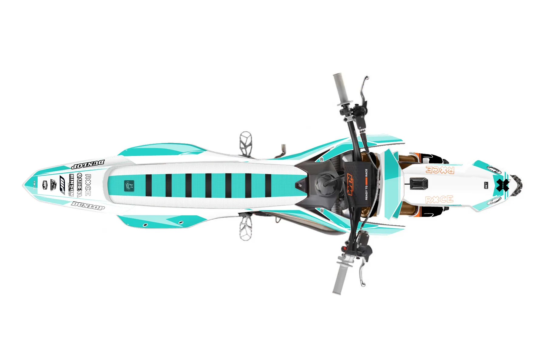 «CustomDesign» — готовый комплект графики серии Untucked для KTM MX Graphic Kit KTM SX-F 350 2025. В комплекте: графика на бак и боковые облицовки, крылья (переднее и заднее), передний щиток, номерные таблички, защита вилки. Материал: ПВХ-винил 80 мкр с холодной ламинацией 300 мкр, общая толщина 380 мкр; покрытие глянцевое или матовое на выбор. Устойчив к UV-излучению, воде, бензину и мойке высокого давления. Клей акриловый на сольвентной основе — постоянный, для гибких пластиков. На простых поверхностях монтируется без нагрева; для сложных изгибов рекомендуем фен. Этот пресет можно заказать как есть или взять за основу в конструкторе: поменять цвета, добавить стартовый номер и свой бренд. Производство — 3–5 рабочих дней, доставка по России СДЭКом или Почтой, по СНГ — курьерскими службами.